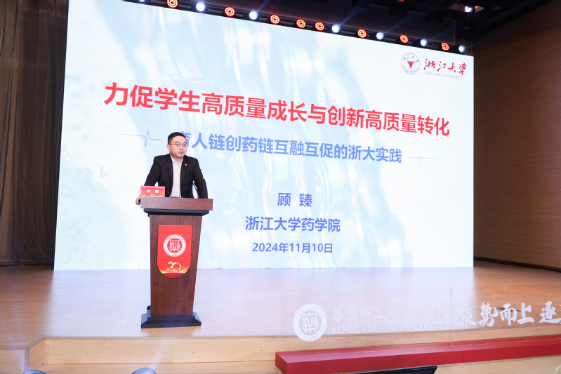 浙江大学药学院院长顾臻教授以“力促学生高质量成长与创新高质量转化-育人链与创药链互融共促的浙大实践”为题,介绍了浙江大学在人才培养和新药创制等方面的实践经验,以及浙江大学在药学学科建设上的关键对策与模式探索。