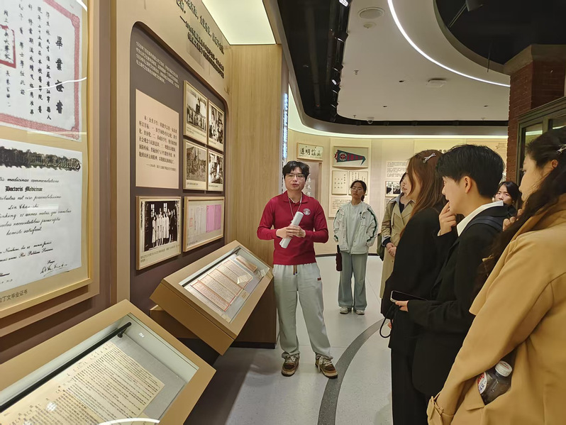 活动后,我院学生前往复旦大学上海医学院院史馆,学习创办人颜福庆先生的医学教育思想。同学们驻足在百年显微仪器、手写科研笔记等珍贵展品前,感悟“惟君建树忙”的实干精神与“科技变革中坚守初心”的科学精神。