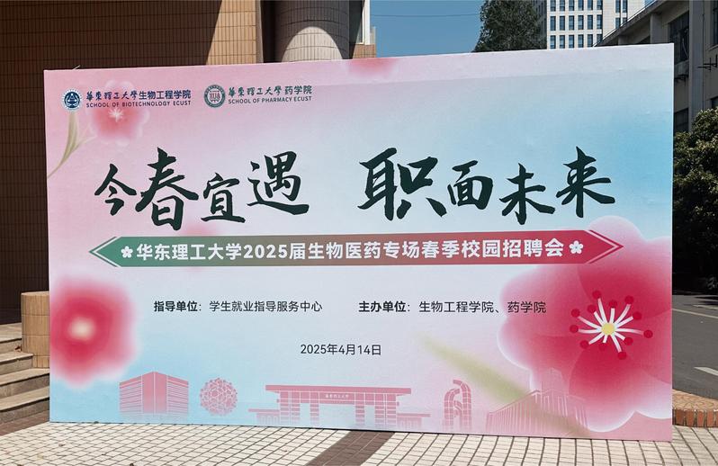为落实教育部关于促进高校毕业生就业工作部署,全力助推2025届毕业生高质量就业,进一步深化校企交流,4月14日下午,华东理工大学药学院与生物工程学院在徐汇校区逸夫楼联合举办“今春宜遇 职面未来”2025年生物医药专场春季校园招聘会。