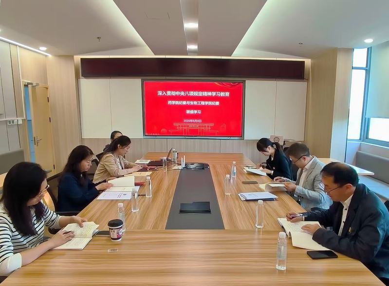 为扎实推进深入贯彻中央八项规定精神学习教育,统一思想、凝聚共识,5月8日,药学院纪委与生物工程学院纪委在实验十八楼418会议室开展联组学习,两院纪委书记、纪委委员和专职组织员出席会议。会议由药学院党委副书记兼纪委书记陈莉丽主持。
