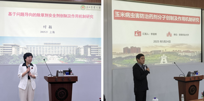 5月24日上午,东北农业大学文理学院院长付颖教授和安徽农业大学人事处副处长兼人才办副主任李亚辉教授应邀为药学院师生作绿色农药创制专题报告。药学院副院长邵旭升教授主持报告会。