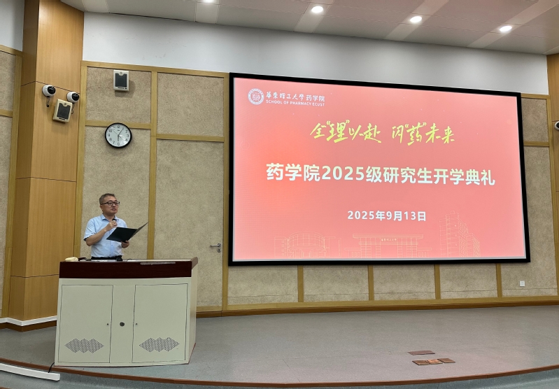 9月13日,药学院2025级研究生开学典礼在徐汇校区七教七大举行。药学院院长赵玉政、党委副书记王越、副院长邵旭升、药学学位点负责人唐赟、药学专业学位点负责人张永强、学院导师代表、辅导员以及300余名研究生新生参加开学典礼。典礼由学院副院长马磊主持。