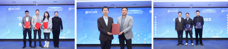 王越为“行业职引系列课堂”授课讲师颁发证书。张敏向上海莱士颁发捐赠证书,并为2025年华东理工大学优秀毕业论文指导教师颁发荣誉证书。