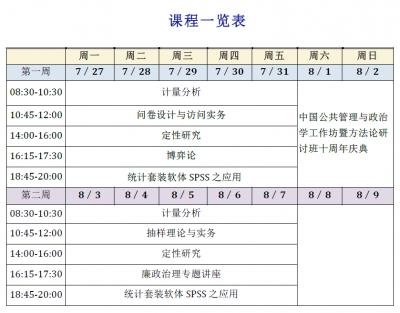 今年的研讨班以循序渐进、实用实作的方式,让学员熟悉社会科学研究方法,课程包括各种收集和分析数据资料的计量方法、定性研究方法、博弈论。由于近年来有关廉政治理在中国大陆公共管理学界受到热烈的关注以及讨论,本次研讨班也特地邀请对廉政治理研究专精的知名学者,讲解如何利用研究方法,开展此领域的学术研究。课程结束后,符合课程修业规定的学员,将获得主办单位颁发的结业证书。除了研讨班的课程,在8 月1、2 两日,研讨班的学员还有机会参加由华南理工大学主办的「中国公共管理与政治学工作坊」,现场观摩与会学者的论文发布与讨论,提升科研视野与实际操作的技巧。
