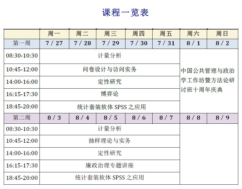 根据2009 年《中国社会科学报》的一篇报导,过去十年国内社会科学的学术水平已有所提升,但仍然有高达73%的受访学者认为,与国外相关研究成果相比,国内的科研水平仍有明显差距。造成这个差距的原因,就在于研究方法的严谨程度不足。因此,推广与提升研究方法,获得绝大多数学科带头人的支持。我们举办「中国公共管理与政治学研究方法暑期研讨班」的目的,即在推广社会科学研究方法的教学、研究与应用。我们希望学员在完成课程训练后,除了能够理解文献中所运用方法的优缺点,并能够在自己的研究中正确地运用研究方法,迅速提升科研质量,进而在任教学校开设有关研究方法的课程,增进学生对于研究方法的认识。