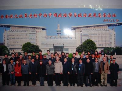 2013年11月30日,“全面深化改革进程中的中国政治学与政治发展高层论坛“在南京师范大学隆重举行。 来自中国社会科学院、北京大学、清华大学、南开大学、吉林大学、山东大学、南京大学、复旦大学、天津师范大学、华中师范大学、苏州大学、云南大学、上海市社会科学联合会等单位的学者以及南京师范大学公共管理学院的部分教师和学生参与了此次活动。吉林大学行政学院周光辉教授应邀出席,并作了“国家认同:现代国家成长的政治基础——以领土认同为分析视角”的主旨发言。