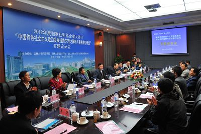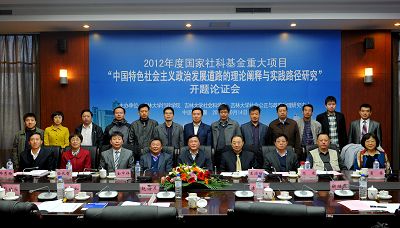 2012年10月14日,由吉林大学行政学院王彩波教授担任首席专家的2012年度国家社会科学重大项目 “中国特色社会主义政治发展道路的理论阐释与实践路径研究”开题报告会在吉林大学匡亚明楼第二会议厅举行。吉林大学副校长吴振武教授参加开幕式并致欢迎辞。中国政治学会副会长、北京大学政府管理学院王浦劬教授担任专家评议组组长,评议组专家还有中国政治学会副会长、天津师范大学政治与行政学院高建教授,中国政治学会常务理事、山东大学政治学与公共管理学院院长葛荃教授。吉林省社科规划办金中祥主任、毕秀梅副主任和吉林大学社会科学处处长孙长智、行政学院边铁书记等相关部门负责人及课题组全体成员30余人参加了会议。