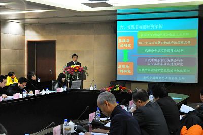 2011年3月19日上午9时,由中国政治学学会副会长、吉林大学匡亚明特聘教授、吉林大学行政学院院长周光辉教授主持承担的国家社科基金重大项目“促进社会公平正义与政府治理研究”开题论证会在吉林大学东荣大厦第一会议室举行。中国政治学学会副会长、教育部人文社会科学重点研究基地“北京大学政治发展与政府管理研究所”副所长王浦劬教授、中国政治学学会副会长、中国社会科学院政治学所副所长杨海蛟教授、北京大学政府管理学院副院长徐湘林教授作为评议专家出席了论证会,吉林大学社会科学处处长孙长智等相关部门负责人以及全体课题组成员30余人参加了会议。