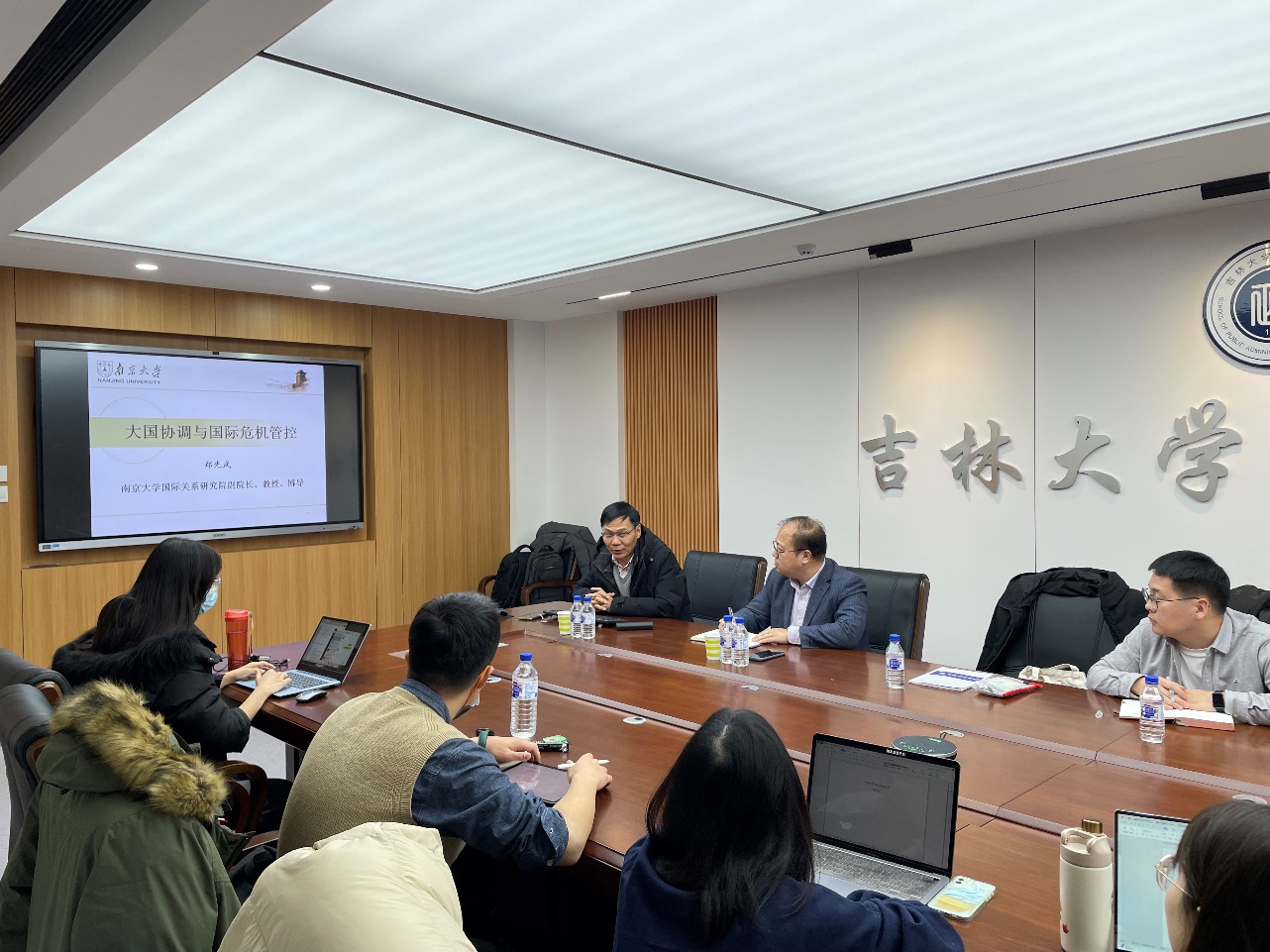 2023年11月30日,吉林大学行政学院举办的国际事务工作坊(第24期)学术讲座在东荣大厦A307会议室举行。本期工作坊邀请南京大学国际关系研究院副院长、教授、博士生导师郑先武担任主讲嘉宾,作主题为《大国协调与国际危机管控》的学术报告。活动由学院国际政治系主任郭锐教授主持,行政学院及其他院系30余名师生参与讲座。