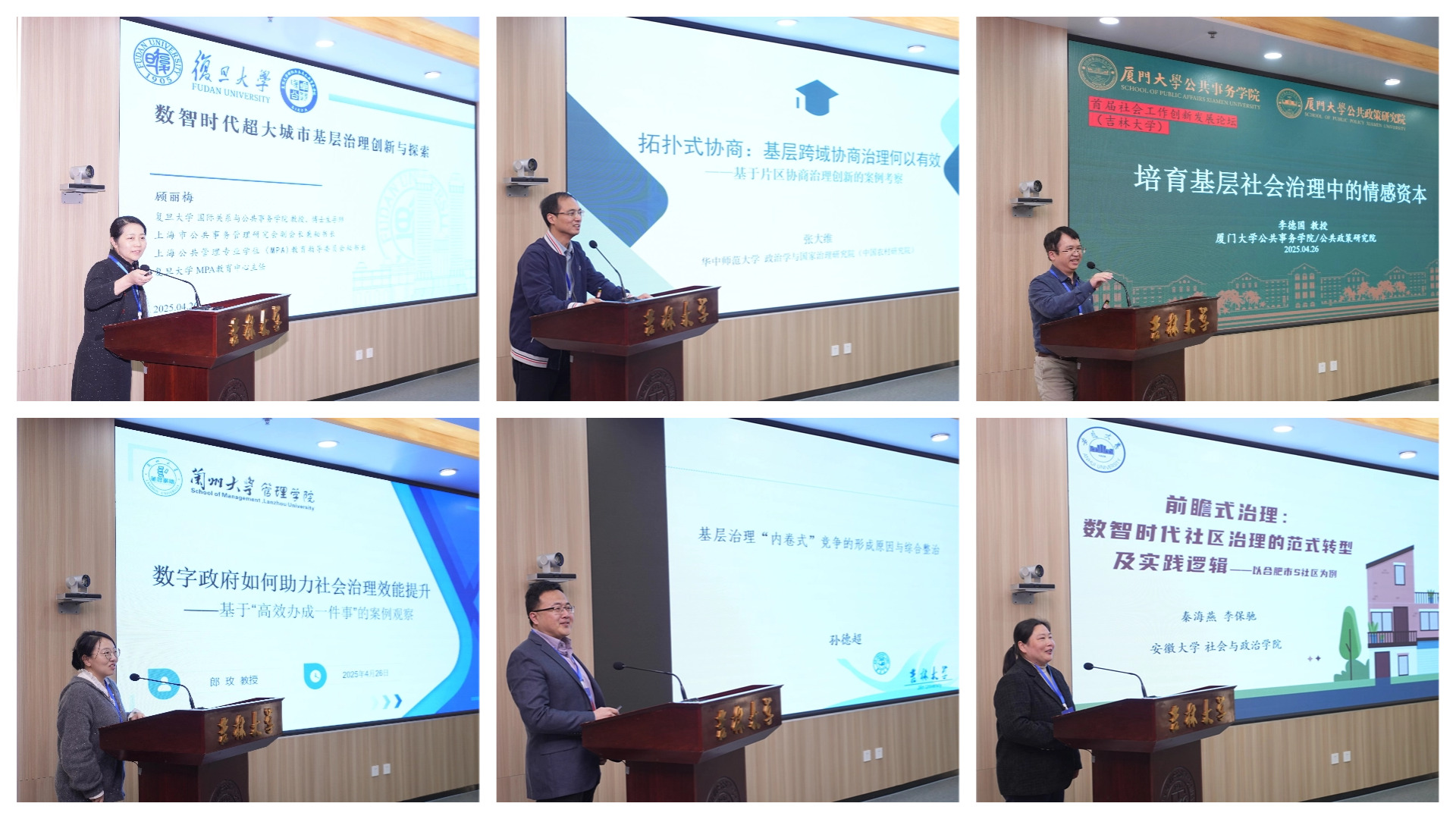 主题演讲三的主题为基层治理的新理念新探索,由《协商治理研究》副主编、吉林大学行政学院张力伟副教授主持。复旦大学MPA教育中心主任、国际关系与公共事务学院顾丽梅教授,华中师范大学政治学与国家治理研究院张大维教授、厦门大学公共事务学院副院长李德国教授、兰州大学管理学院郎玫教授、吉林大学行政学院孙德超教授、安徽大学社会与政治学院秦海燕讲师分别以《数智时代超大城市基层治理创新与探索》《拓扑式协商:基层跨域协商治理何以有效——基于片区协商治理创新的案例考察》《培育基层社会治理中的情感资本》《数字政府如何助力社会治理效能提升——基于“高效办成一件事”的案例观察》《基层治理“内卷式”竞争的形成原因与综合整治》《前瞻式治理:数智时代社区治理的范式转型及实践逻辑》为题发表演讲。