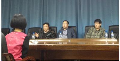 2014年11月14日晚上,吉林大学行政学院在东荣大厦511学术交流中心举办本科生保研经验交流会。交流会由本科生教学秘书曲文娜老师主持。本次交流会邀请到国际政治系郭锐副教授、行政管理系孙德超副教授和政治学系马雪松副教授担任评委,并由2011级三名已经成功保研的同学贺竞超、李思宇、徐炎做现场模拟面试。