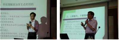 开幕式结束后,南京大学张凤阳教授主讲,题目为“《政治学原理》教学中的概念辨识”。张凤阳教授从自身的教学与研究经历出发,指出人文学科与社会科学的研究者经常从不同意涵指向使用同一概念,致使不在一个层面上探讨问题,很难形成真正交锋。而政治学作为跨人文与社科的一门学科,此种现象尤甚。张凤阳教授从“概念史”研究说起,重点引述了克塞雷科的概念史研究,指出“基本概念”应该具有的四大特征:时代化、民主化、政治化、意识形态化。张老师以《政治学原理》教学中的一个有待做反思处理的“概念丛”:国家—主权—民族为例,对这一概念丛进行了概念史的梳理与辨识。指出概念在不同时代,不同语境,不同背景下的不同含义。并强调概念辨识作为任课教师的基础性工作在《政治学原理》授课中的重要意义。