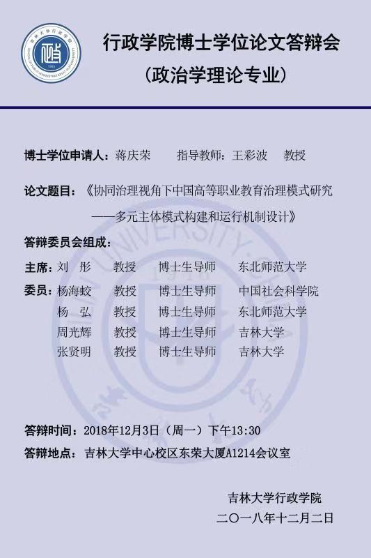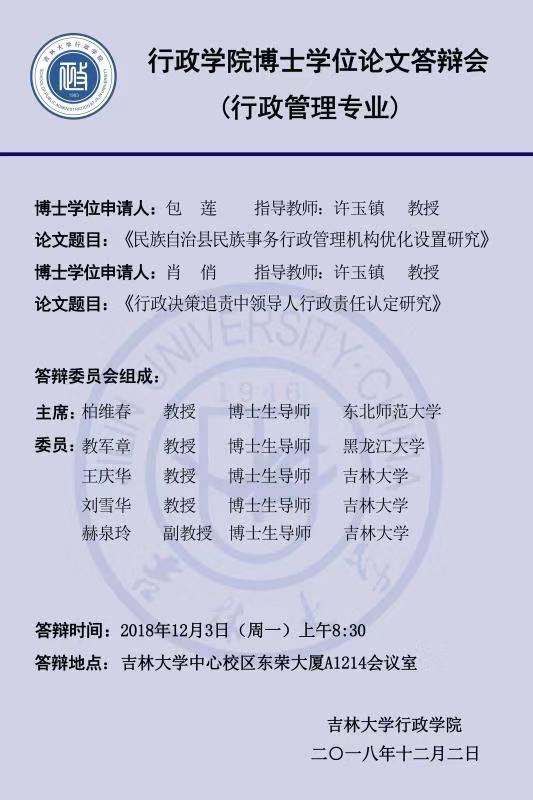 通信地址:中国吉林省长春市前进大街2699号吉林大学行政学院(邮编:130012)