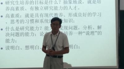 周光辉教授详细讲解了研究生的培养目标及培养规范,鼓励大家要树立学术创新意识,以缜密的思维,清晰的逻辑和充足的据理来规范学术论文的写作。周光辉教授指出,研究生规范培养的集中体现就是学术论文的撰写,并强调了要充分认识到端正学术风气,加强学术道德建设的必要性和紧迫性。周光辉教授还讲述了学术论文质量的评价标准等,为新入学的研究生同学们开启了一扇关于学术论文写作的大门。