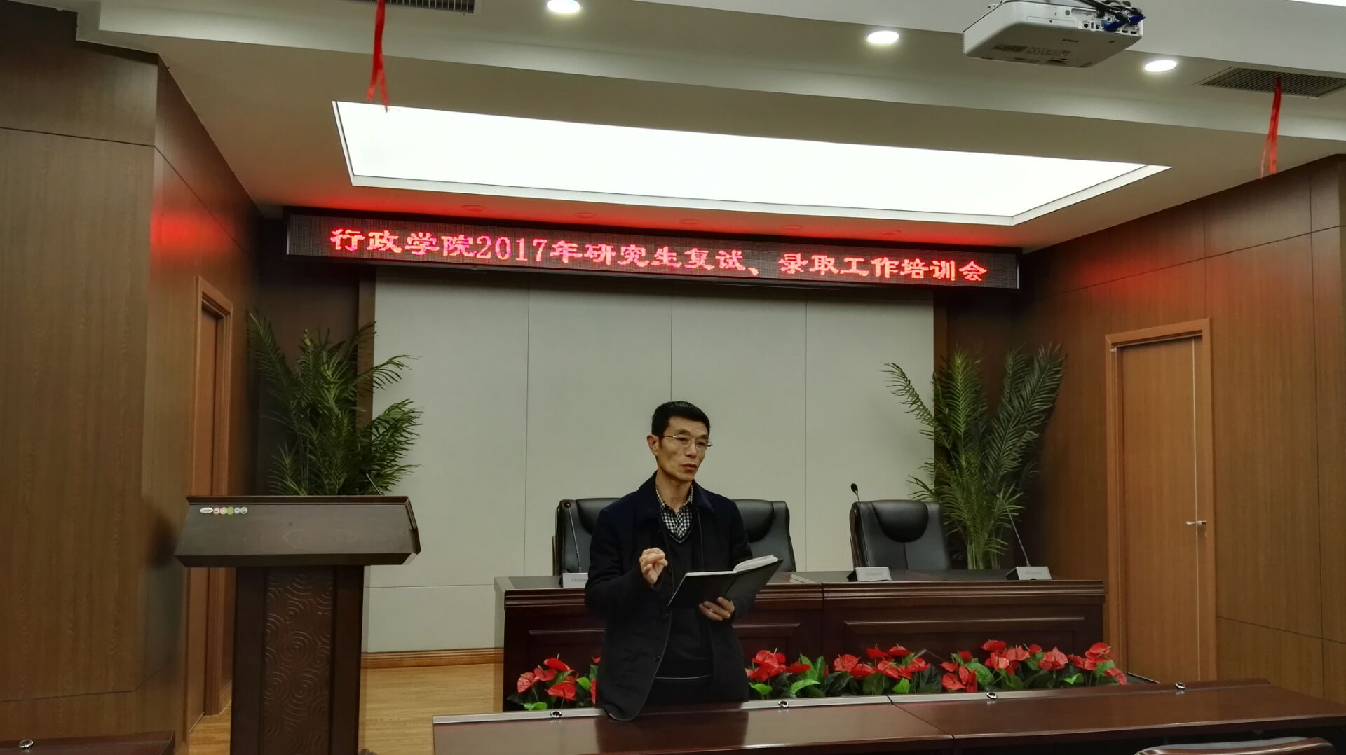 首先,许玉镇副院长为全体与会人员解读了《吉林大学关于做好2017年招收硕士研究生复试、录取工作的意见》、《行政学院2017年招收硕士研究生复试基本要求及复试细则》中的相关规定,并介绍了2017年研究生复试工作的总体情况,并对行政学院2017年研究生复试和录取工作进行了分工,要求参与复试的老师和工作人员认真履行工作职责。