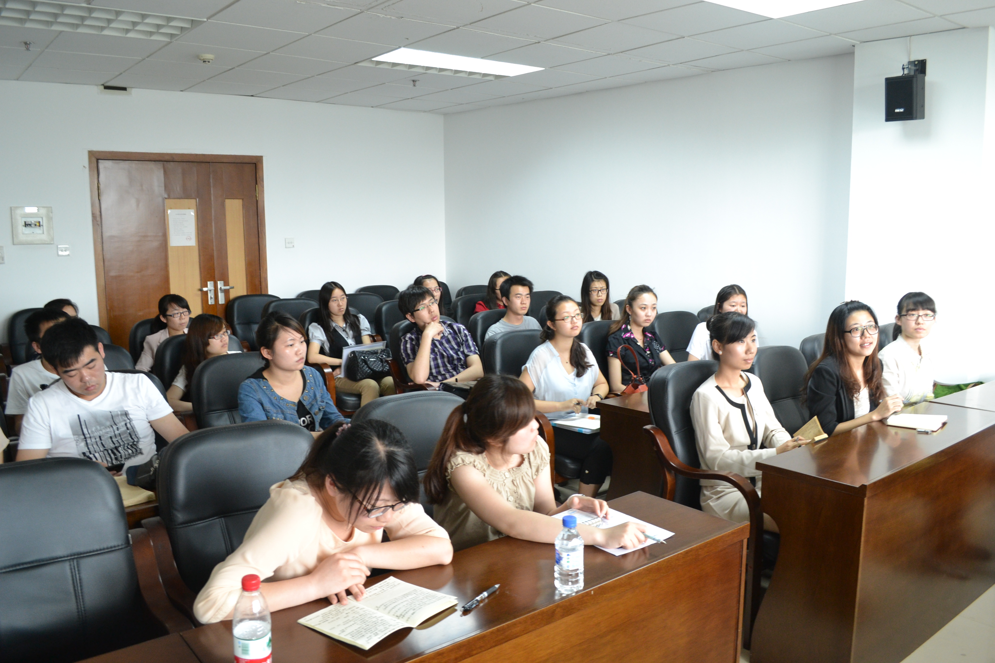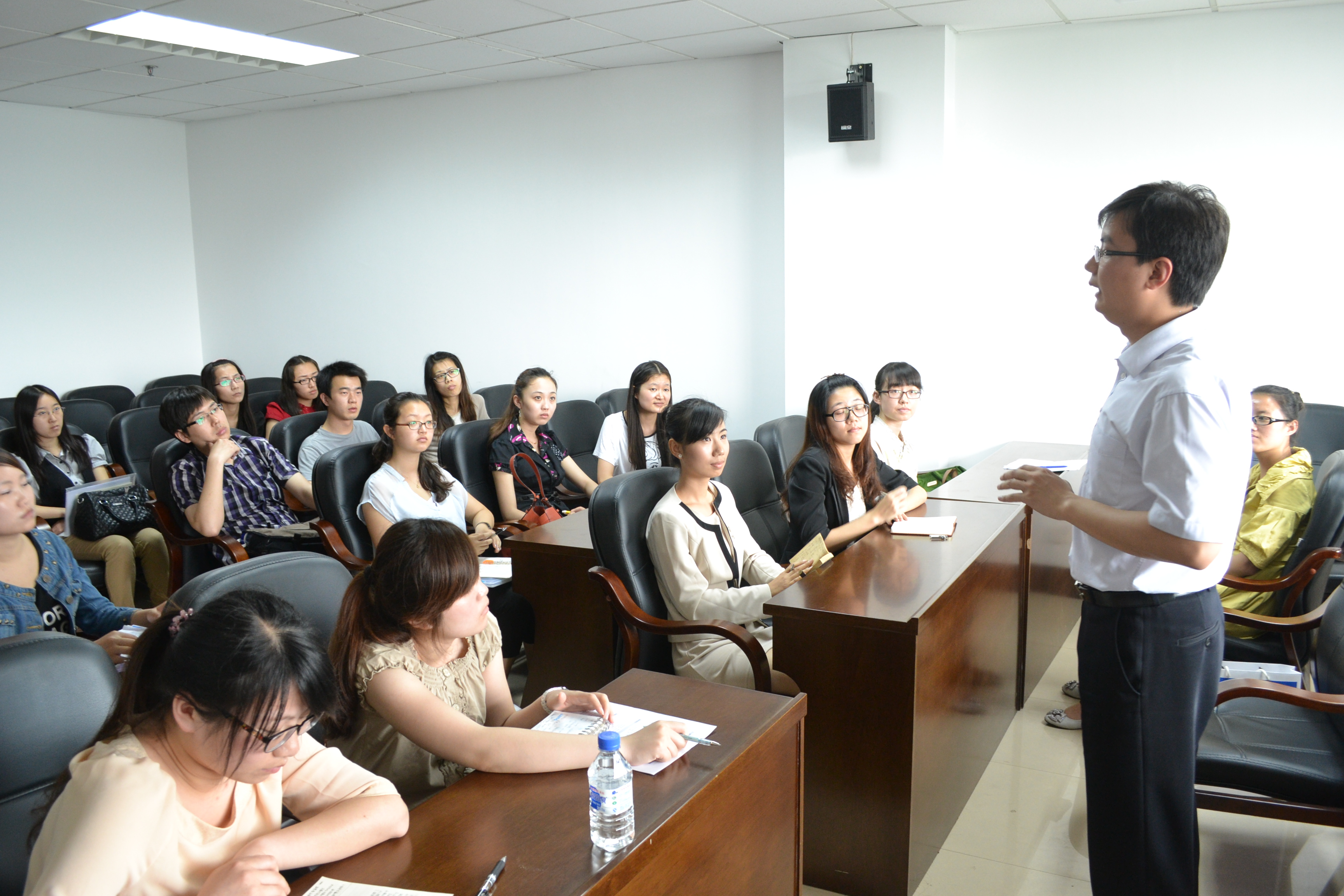 其次,冯博总监对东软集团做了详细介绍,对管理精英“东软行”活动做了补充说明。冯总监介绍中谈到,1991 年,东软创立于中国东北大学,现在东软集团已成为中国最大的IT解决方案与服务供应商。目前,公司拥有员工23000 余名,从事人力资源管理的人员有200余名,表示人力资源管理工作在东软大有可为。冯博总监还结合自身在东软的发展历程,向同学们展示了一个优秀的HR是怎样练成的。在接下来的互动环节中,冯博总监对同学们关心的管理精英‘东软行’活动及同学们感兴趣的其他问题一一做了回答。