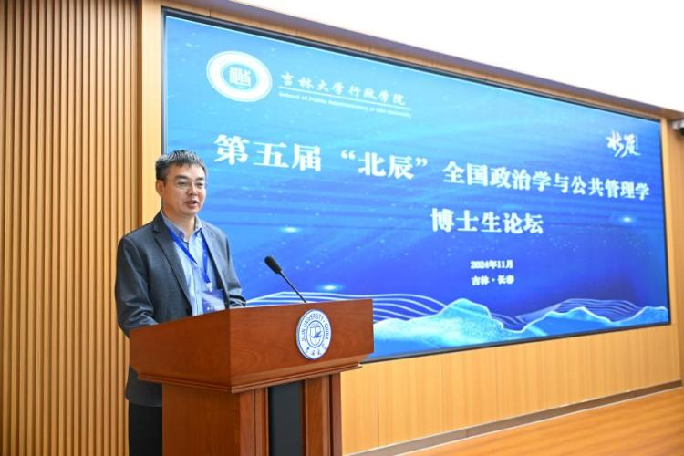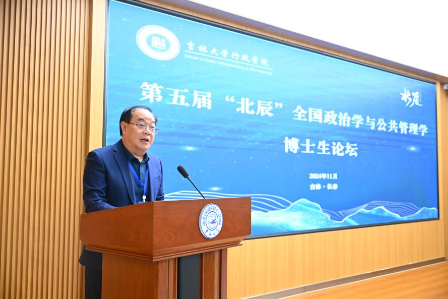 2024年11月8日上午9:00,吉林大学行政学院第五届“北辰”全国政治学与公共管理学博士生论坛在东荣大厦B102报告厅举行。吉林大学行政学院院长张贤明,行政学院党委书记陈希贵,南开大学周恩来政府管理学院副院长郭道久,山东大学政治学与公共管理学院政治学系主任李振,吉林大学行政学院副院长马雪松,行政学院教授薛洁等出席开幕式。
