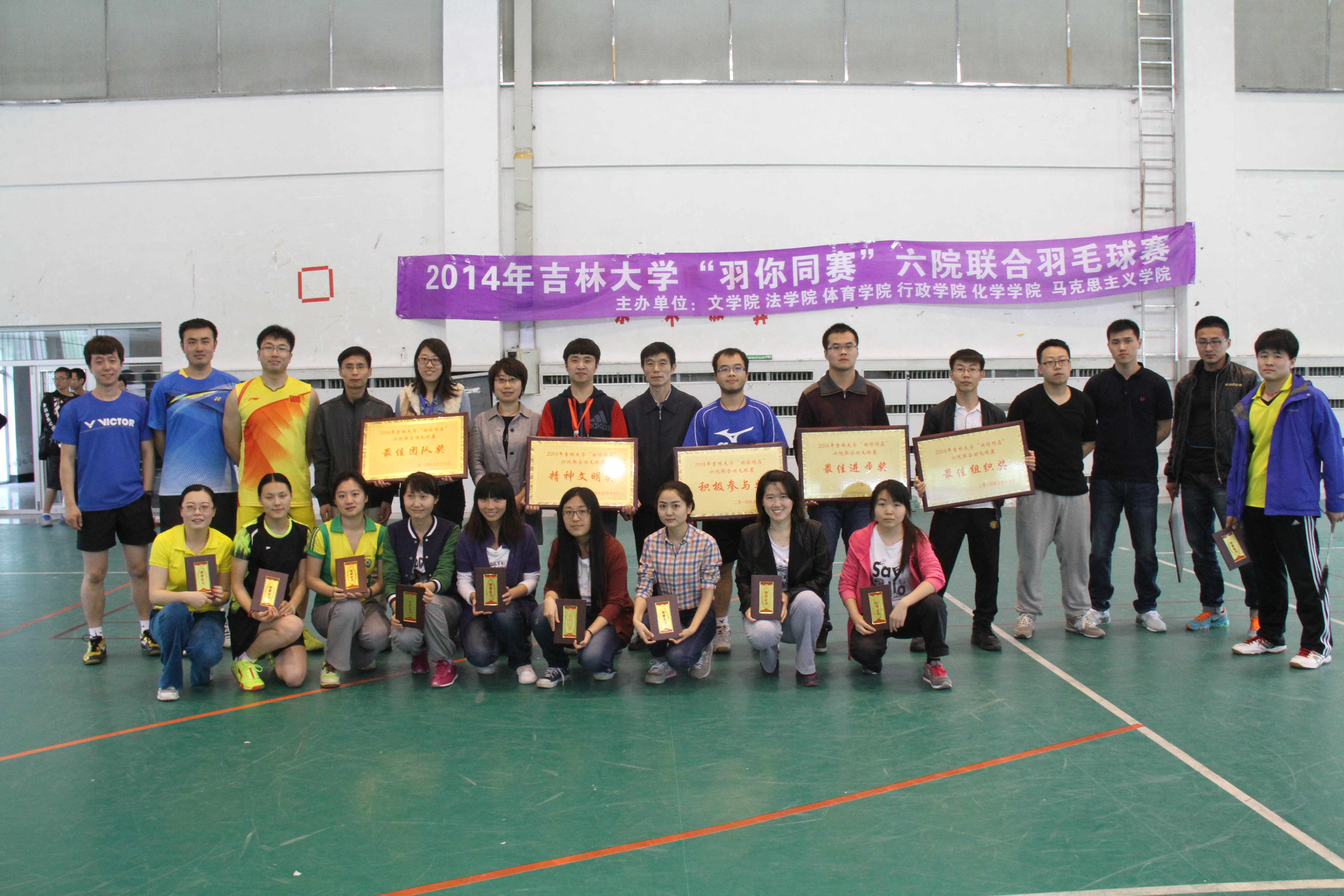 5月17日,吉林大学“羽你同赛”羽毛球赛在中心校区体育馆举行。本次大赛以丰富研究生课余生活、增强体育锻炼和密切友谊为目的,由行政学院与文学院、法学院、体育学院、化学学院和马克思主义学院联合举办。比赛包括男单、女单、男双、女双四个项目,实行淘汰赛规则和11分满分三局两胜制。我院派出博士生、硕士生共十余名选手参加各项目比赛。