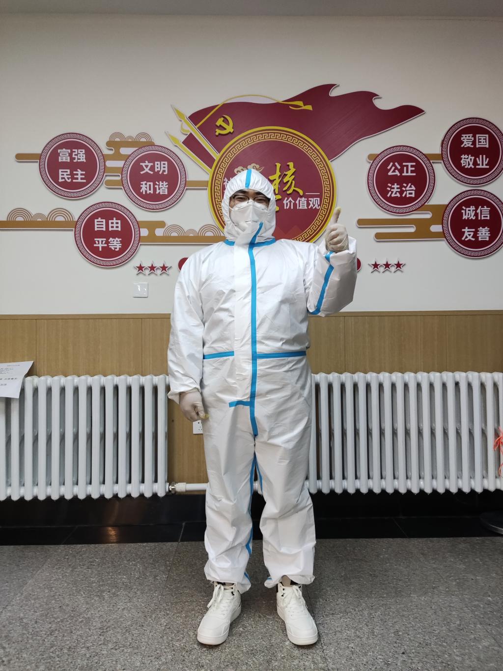 面对体能、精神、时间等巨大的压力,行政学院博士生志愿者无一人退缩,他们把个人融入集体,全心全意服务好同学,以最好面貌做好了志愿者工作。只要有同学出现缺饭、缺核酸检测盒、缺一瓶矿泉水的情况,志愿者都会不厌其烦地及时补送,尽最大力量为同学们服务。2019级法律政治学博士研究生李洪川谈到这次志愿工作说:“近1个月的志愿活动中,大多数工作都是体力活,穿着防护服搬运东西,上下楼一次衣服可能就湿了,但大家很自觉,没有偷懒,没有旷工,互帮互助,真正把志愿活动当成了一种责任。”志愿本自愿,但是作为预备党员的他把志愿当成了责任,用自己实际行动践行入党誓词,发挥模范带头作用为党旗增辉添彩。