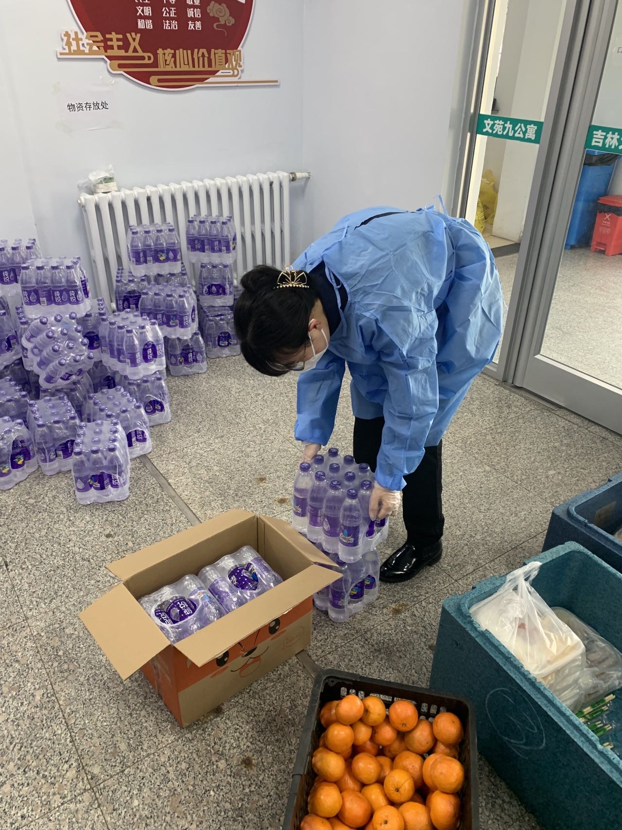 南苑公寓、文苑公寓住着行政学院的博士生,但是分布相对分散,南五A第一批志愿者中二十多人的搬运队伍要负责整栋楼几百上千名同学的生活物资,在没有电梯辅助的情况下,可想而知,志愿者要做的搬运工作面临多大的困难。事发突然,先是由时间允许能够承担下巨大工作量的博士生开始做志愿工作,很快,第二第三批博士生志愿者迅速组建,为后续防疫工作的开展提供了巨大力量。博士研究生身上往往有很多科研任务,常常需要每天凌晨三点入睡,第二天七点就要起床去配送早饭。参加志愿工作,就意味着要牺牲自己的时间、在科研和志愿工作中做好平衡。