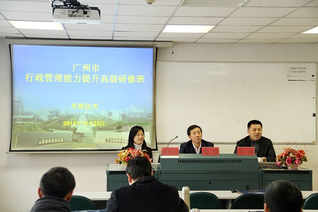 12月23日上午,广州行政管理能力提升高级研修班在吉林大学行政学院MPA教室举行开班仪式。行政学院党委书记边铁,广州市政府系统培训中心黄淑萍助理出席开班仪式,仪式由范斌主持。