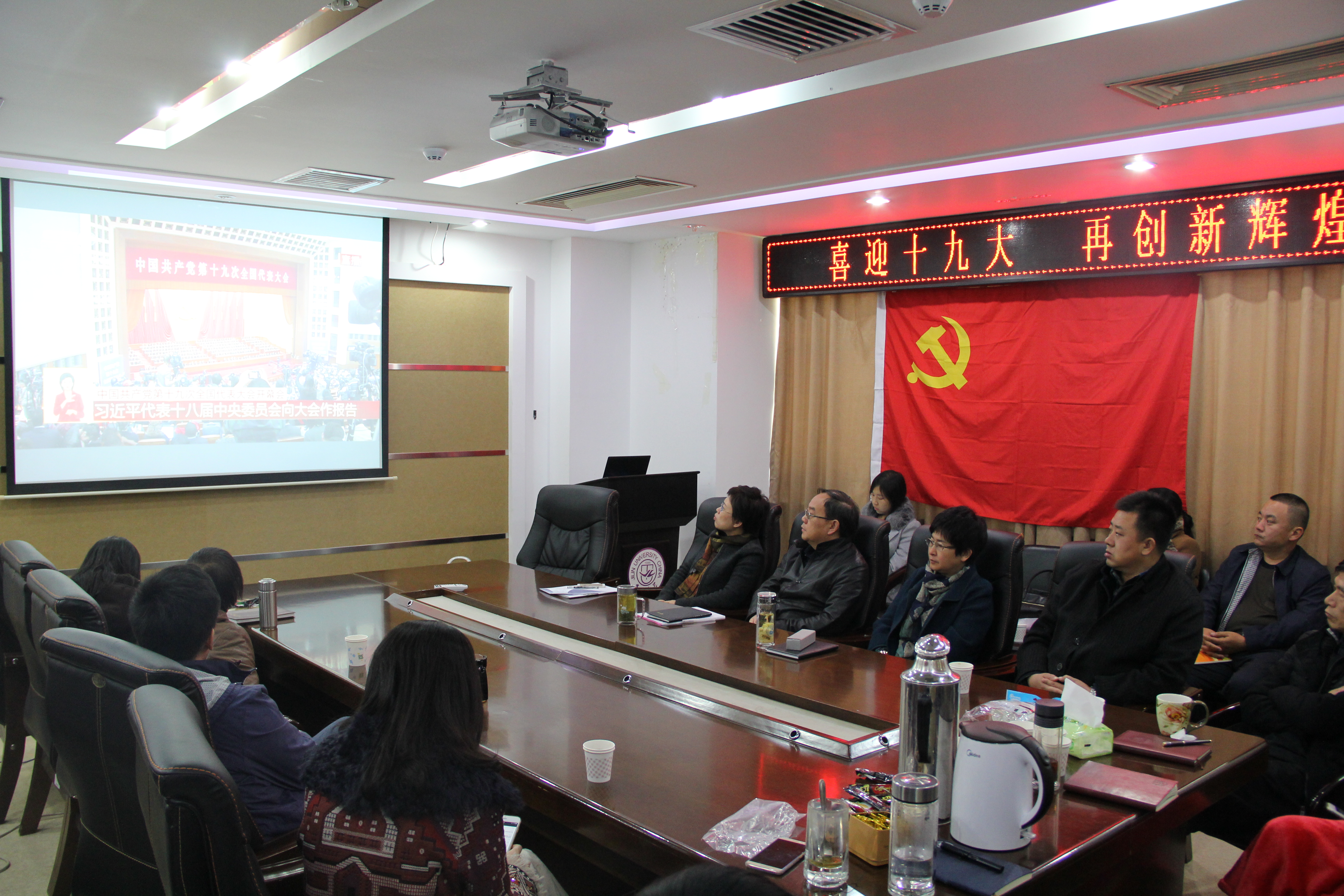 党政领导班子全体成员与全体行政管理人员,在东荣1214会议室集中收看了本次大会开幕式现场直播,认真聆听了习近平总书记所作的大会报告。同志们为多年来特别是党的十八大以来党领导我国改革发展取得的历史性成就感到由衷的自豪,对以习近平同志为核心的党中央将领导我们国家沿着中国特色社会主义道路阔步前进感到由衷的自信。