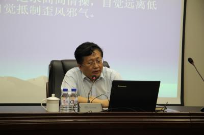邴正教授从“认真学习‘三严三实’的深刻内涵”,“如何认识理想信念”,“中华民族的理想信念”,“共产党人的理想信念”,“加强理想信念教育的意义”以及“如何坚定理想信念”等六个方面展开了阐释。邴正教授指出,坚定共产党员的理想信念,是深入开展“两学一做”学习教育,完整理解党章党规、习近平总书记系列重要讲话的重要前提,也是“三严三实”专题教育中“严以修身”的主要内容和要求。