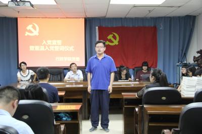 常有余副书记代表学院党委做了讲话。他向参加宣誓仪式的新老党员提出了四点希望和要求,一是要加强党员意识,增强组织观念,做到心中有党;二是要恪守入党誓词,践行党员使命,不断提高责任感和使命感,坚定理想信念,做一名不辱使命,终生为党的事业而奋斗的人;三是要切实发挥先锋模范作用,时时处处体现党的先进性,努力用自己的模范行动塑造党员的良好形象,为党旗争光添彩;四是要加强学习,立志成才报国,掌握真才实学,真正成为中国特色社会主义事业的合格建设者和可靠接班人。