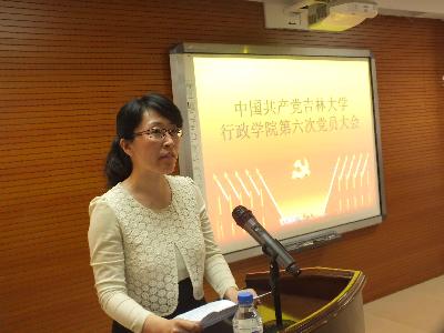 大会在庄严的《国歌》声中拉开帷幕。党委副书记常有余同志宣读学校党委关于同意行政学院召开第六次党员大会的批复文件之后,党委书记边铁同志代表行政学院第五届委员会做了题为《围绕中心、服务大局、营造氛围、增强动力,为高水平研究型学院建设实现新跨越而努力奋斗》的工作报告。报告从完善决策制度和治理结构,提高学院管理规范化、民主化、科学化水平;以“五实”为主线开展学习实践活动,增强贯彻落实科学发展观的自觉性与坚定性;以“七比七评”为抓手开展创先争优活动,充分发挥党组织和党员的模范带头作用;以党组织活动机制化为重点开展基层组织建设年活动,增强党组织的生机与活力;以作风建设为主题开展群众路线教育实践活动,解决领导班子建设和学院发展中存在的突出问题;加强干部队伍建设,提高管理和服务的水平和效率;改进学生党员发展和教育管理工作,保持学生党组织先进性和纯洁性;加强学生教育和管理,促进学生健康成长全面发展;创新教职工思想政治教育,发挥群众组织作用,增强学院的归属感和向心力;加强宣传和信息工作,为学院发展营造氛围鼓舞士气;组织开展政策理论学习,保持正确的办学方向;加强反腐倡廉建设,为学院发展营造风清气正的氛围、重视综合治理工作,为学院发展创造平安稳定的环境;规范党费收缴和管理,提高党费使用效益等十四个方面全面回顾和总结了上一届党委的工作。在分析了学院建设和发展面临的新形势新任务之后,边铁提出今后一个时期,学院党委要始终坚持以邓小平理论、“三个代表”重要思想和科学发展观为指导,贯彻落实习近平总书记重要讲话精神,继续积极探索高校基层党委工作规律和发挥作用的有效途径,针对学院学科特点,围绕学院中心工作,不断创新党委工作思路,完善党组织工作机制,优化党组织活动方式,努力把党的思想、组织、作风、反腐倡廉和制度建设提高到一个新水平,更好地肩负起保证方向、把握大局、协调关系、促进和谐、营造氛围、凝聚力量、服务师生、推动发展的责任,大力推动高水平研究型学院建设实现新跨越。他还重点从谋划学院长远发展战略和举措、加强院系领导班子建设、打造精干高效的管理服务团队、加强教职工党支部建设、加强学生党建工作、加强学生理想信念教育和创新意识实践能力培养、改进政治理论学习、引导关心服务教职工、巩固优良院风教风学风、深入开展创先争优活动等十个方面阐述了今后几年学院党委的工作任务。边铁所做的工作报告获得与会党员一致通过。