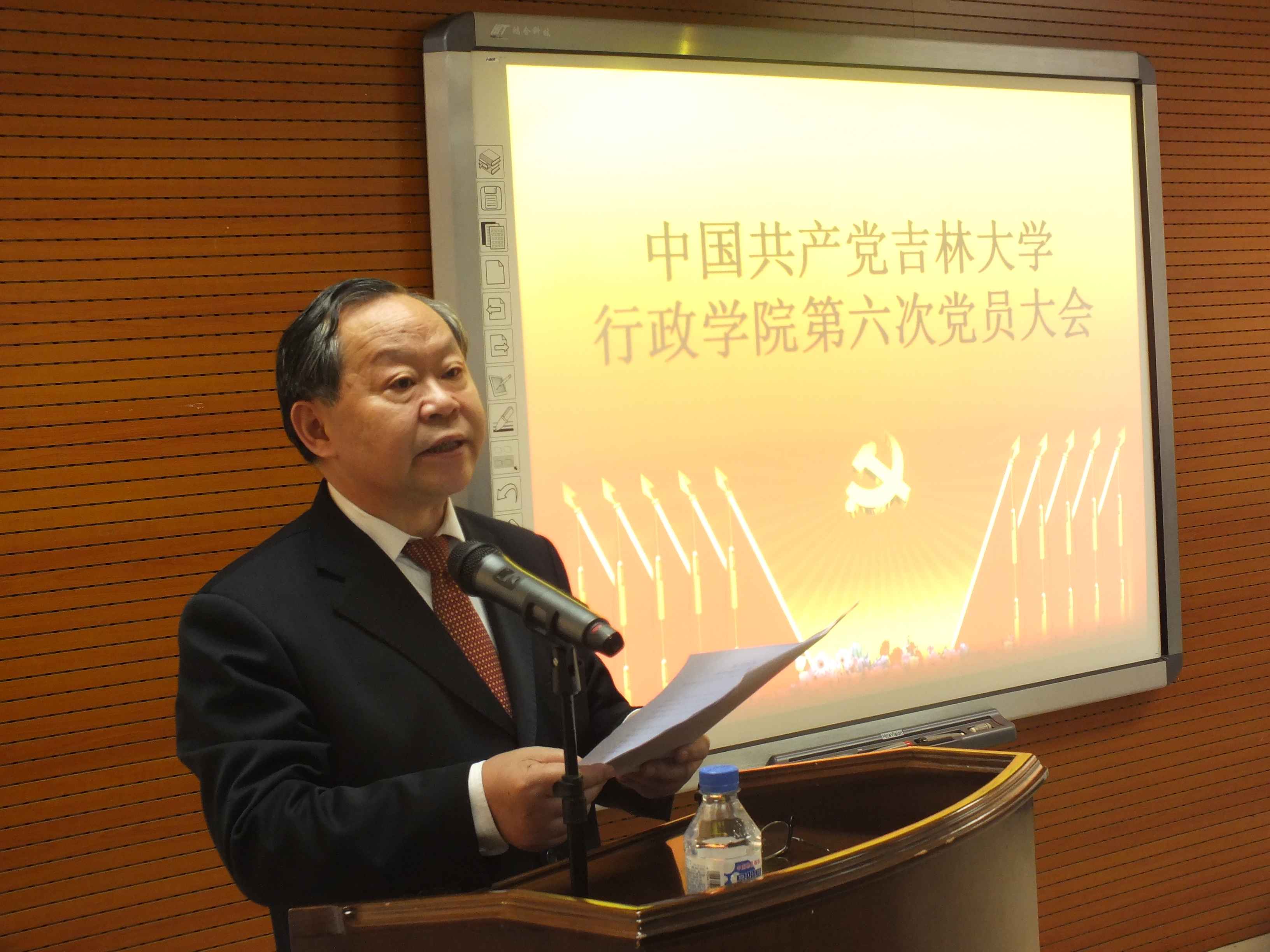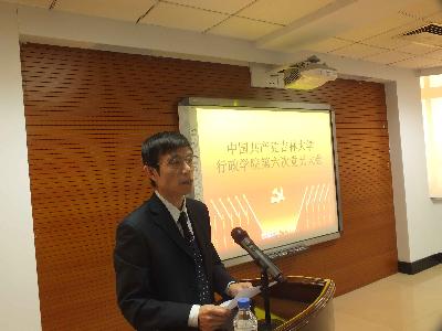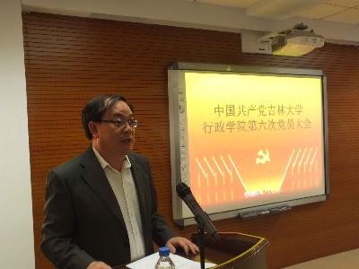 会上,陈德文书记发表了重要讲话。他代表学校党委对行政学院第六次党员大会的成功召开和11位党委委员的顺利当选表示热烈的祝贺,对五年来行政学院党委的工作和取得的成绩给予高度评价和充分的肯定,并就抓好党建工作提出了四点要求:一是巩固扩大党的群众路线教育实践活动成果,完善改进作风的长效机制;二是扎实抓好党员队伍建设这一系统工程,坚持不懈地提高党员素质;三是着力推进基层组织建设,夯实立党为公、执政为民的组织基础;四是坚持围绕中心服务大局,以改革创新精神推进学校内涵建设。陈书记要求行政学院的全体党员要更加紧密地团结起来、更加积极地奋发起来、更加自觉地行动起来,在学校党委的坚强领导下,以高度的政治责任感和历史使命感,以时不我待、只争朝夕的紧迫感,齐心协力、乘势而上、凝心聚力、攻坚克难,为早日将吉林大学建成国际知名的高水平研究型大学而努力奋斗。