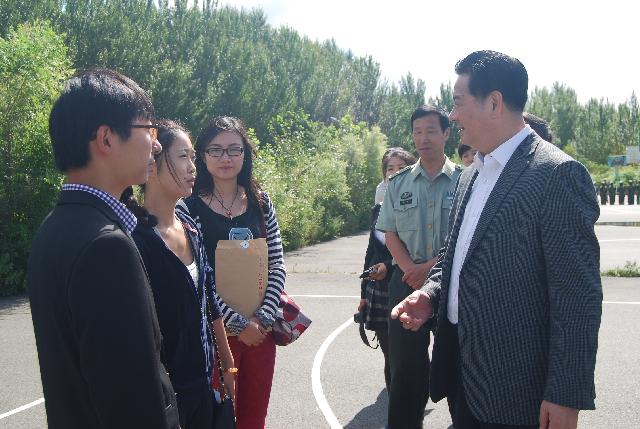 李元元校长十分关心2013级新生的学习与生活,不时向学院本科生辅导员刘洋询问有关新生的数据和军训情况。李元元校长还同在军训现场的学院本科生助理辅导员吴兴识和学生干部代表亲切交谈,询问了学院军训新生合唱比赛、演讲比赛的准备情况。