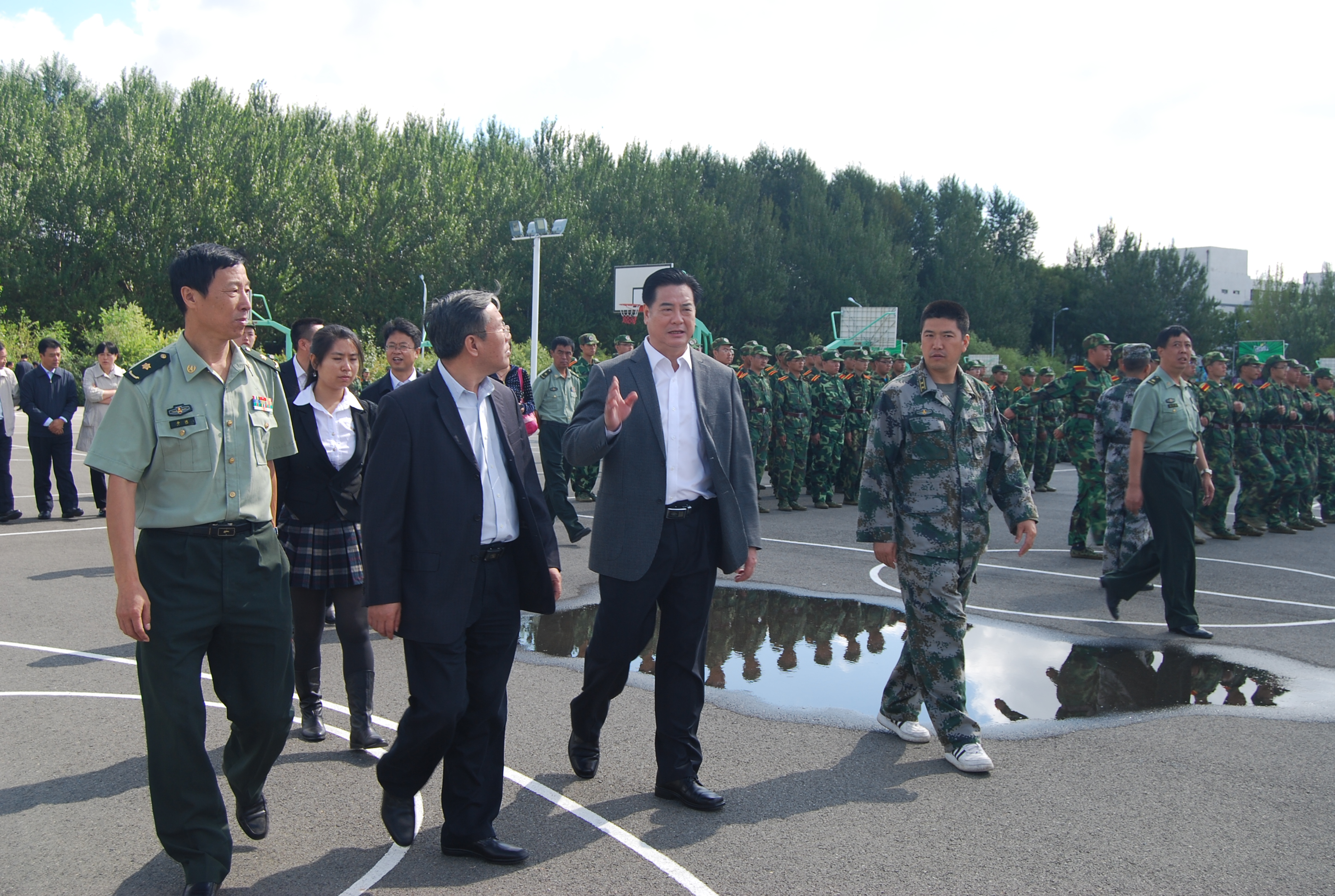 9月2日上午,风和日丽、艳阳高照,吉林大学校长李元元教授、校党委副书记兼副校长韩晓峰教授等学校领导在学校武装部相关老师的陪同下,来到军训场地看望2013级军训新生。