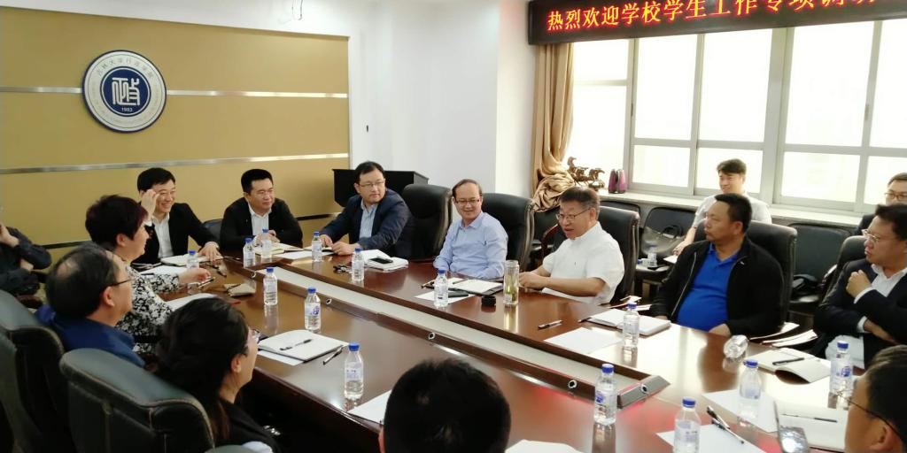 5月23日下午,校党委副书记冯正玉率学校学生工作专项调研组来我院调研。调研组由学校党委办公室、学生工作部、研究生工作部、教务处、校团委、学生就业创业指导与服务中心、学生心理健康指导中心等单位相关负责同志组成。我院党政领导班子全体成员、研究生教学秘书、全体辅导员和部分学生代表参加调研座谈。调研座谈会由我院党委书记魏鹤影主持。