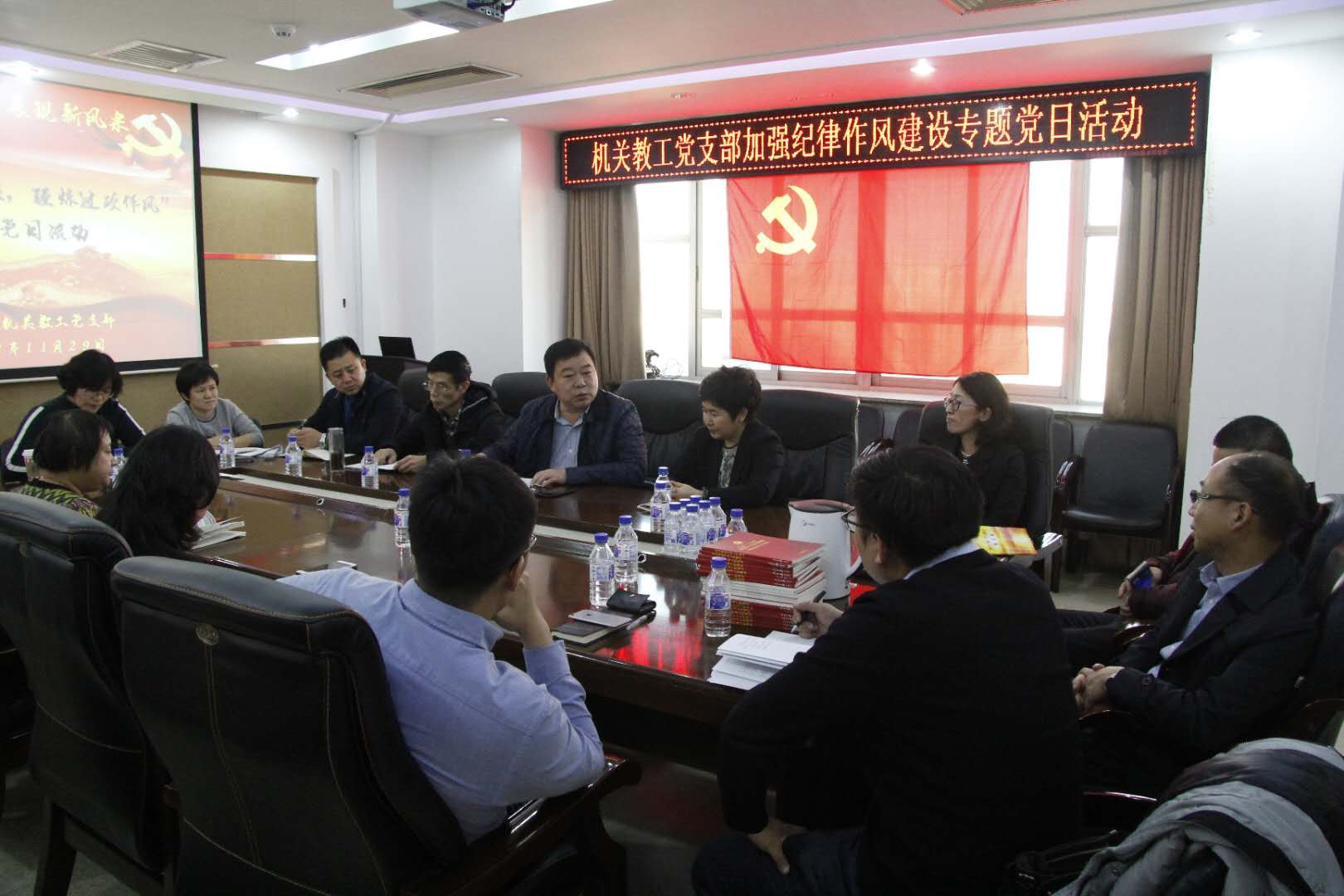 为深入贯彻党的十九大精神,落实全面从严治党要求,进一步增强支部党员纪律意识和规矩意识,不断提高拒腐防变能力,支部以学校开展干部作风整顿活动为契机,结合学习落实《中国共产党支部工作条例(试行)》,于2018年11月29日下午,组织开展“迈进新时代 展现新风采—机关教工党支部‘坚定理想信念 强化纪律规矩’专题党日活动”,支部邀请吉林大学纪委纪律审查室正处级纪检员刘晓昌主任以“以案释纪明纪,严守纪律规矩”为题为支部党员讲授专题党课,持续推进“两学一做”学习教育常态化制度化。行政学院党委书记魏鹤影,党委副书记、纪委书记常有余,党委副书记兼副院长史慕华,副院长范斌以及机关教工支部全体党员参加了此次活动,活动由支部书记密佳音主持。此次活动得到了校纪委和学院党委的大力支持,是支部获立学院基层党组织活动立项项目的具体实施。