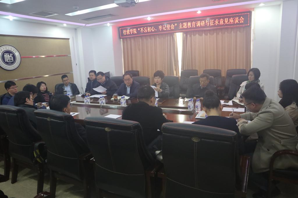 2019年10月10日—11日,在东荣大厦1214会议室,行政学院处级领导干部与政治学系教师、国际政治系教师、行政管理系教师和电子政务系教师分别召开“不忘初心、牢记使命”主题教育调研与征求意见座谈会,党委书记魏鹤影主持会议。