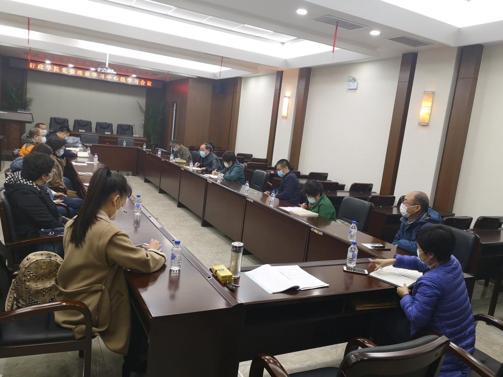 4月13日上午,行政学院党委理论学习中心组在东荣大厦B303会议室召开专题学习会议,参会人员有院领导班子成员、党委委员、各系主任和党支部书记,党委书记魏鹤影主持会议。