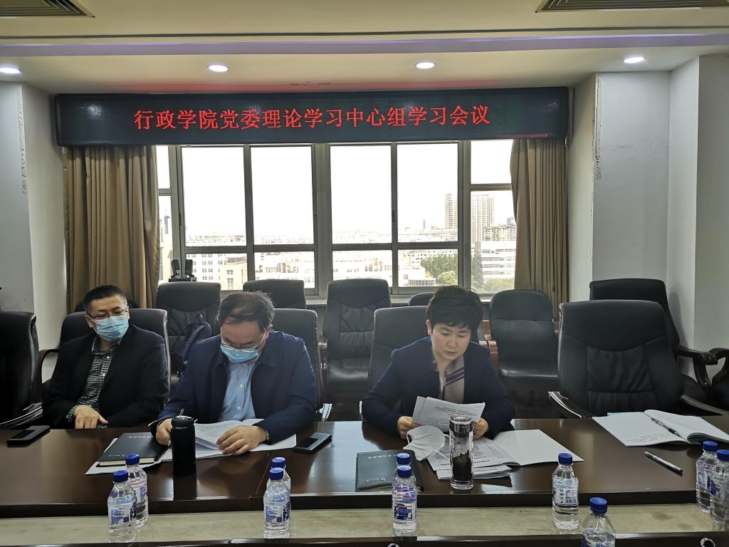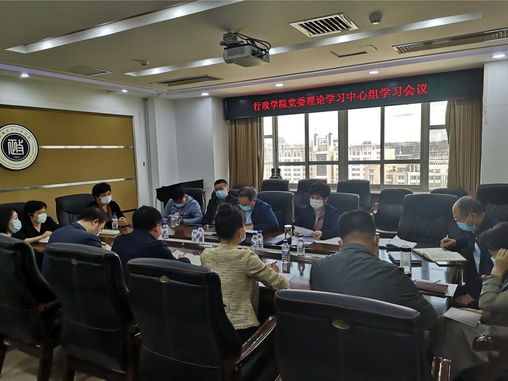 5月25日上午,行政学院党委理论学习中心组在东荣大厦1214会议室召开专题学习会议,参会人员有院领导班子成员、党委委员、各系主任和党支部书记,党委书记魏鹤影主持会议。
