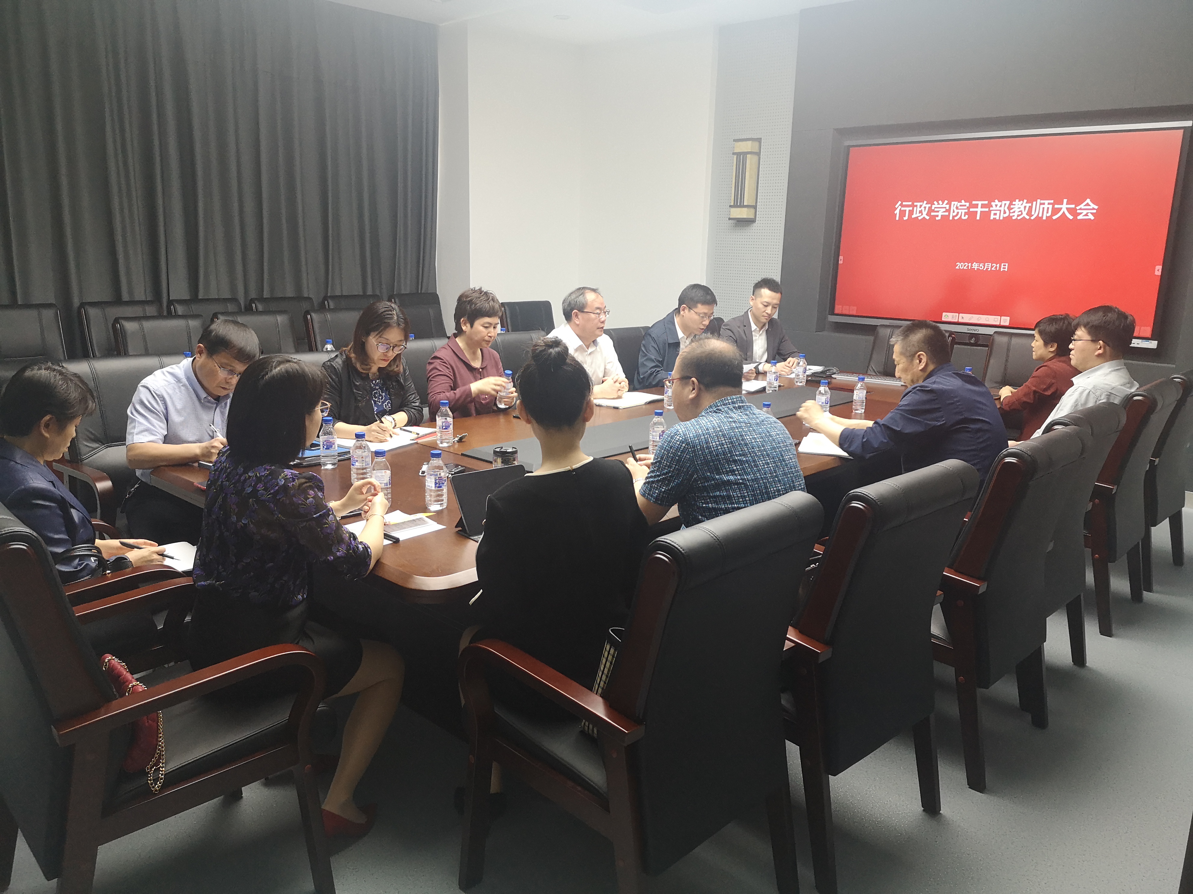 5月21日下午,行政学院在东荣大厦B304会议室召开干部教师大会,宣布部分领导调整决定。学院党政领导班子成员、纪委委员,党建工作联络员、基层监察员,学术委员会、学位评定分委员会、教学委员会主要负责人,依托学院建设的科研单位正副职、系主任、党支部书记等参加会议。会议由行政学院党委书记马景惠主持。