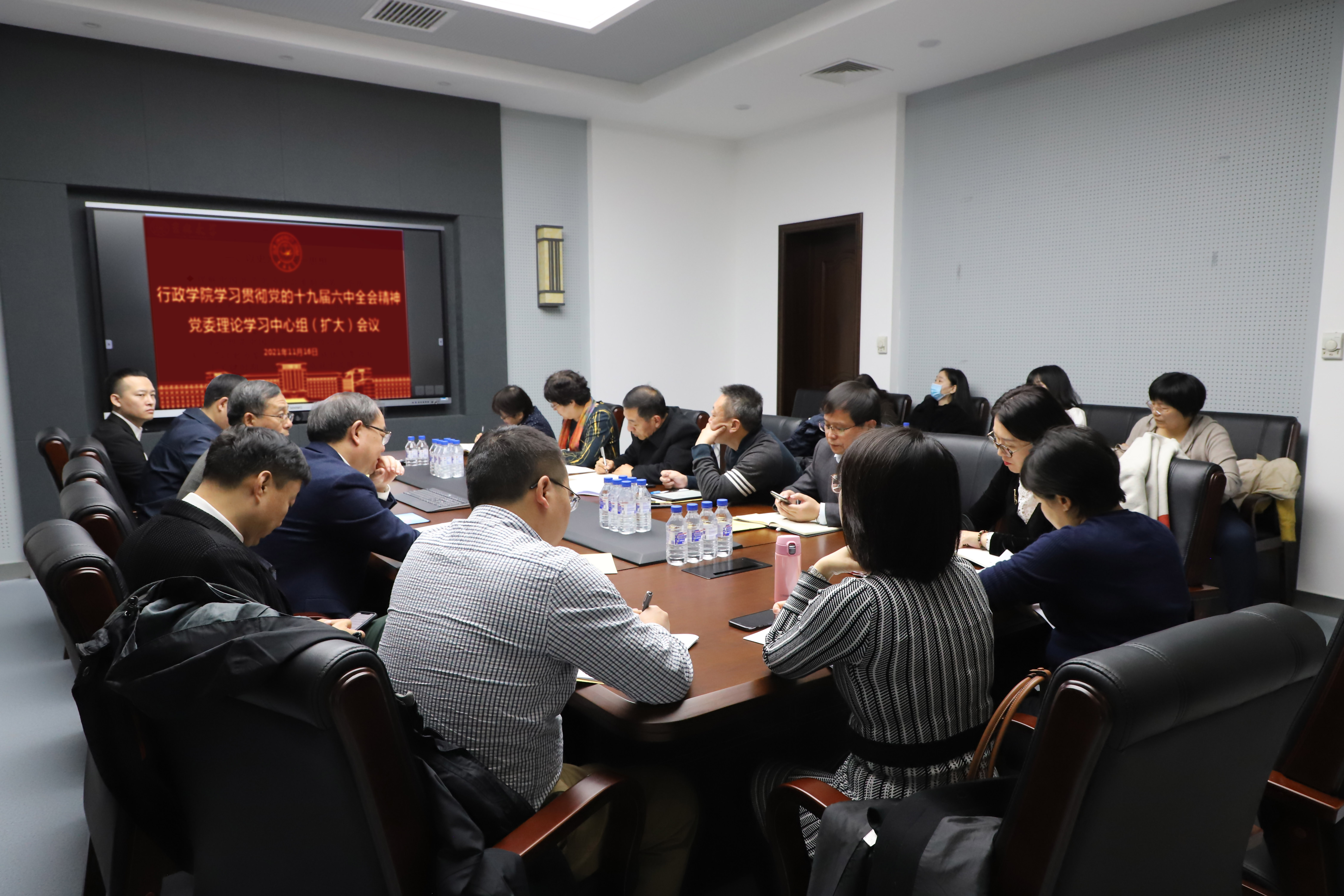 11月16日上午,行政学院在东荣大厦B304会议室召开党委理论学习中心组学习(扩大)会议暨党的十九届六中全会学习辅导报告会,专题学习党的十九届六中全会精神,邀请国家“万人计划”首批哲学社会科学领军人才周光辉教授作专题辅导报告。学院党委委员、党员领导班子成员、各系主任、教工党支部书记、部分教师党员参加集体学习,学校党史学习教育第四指导组全体成员列席会议。会议由党委书记马景惠主持。