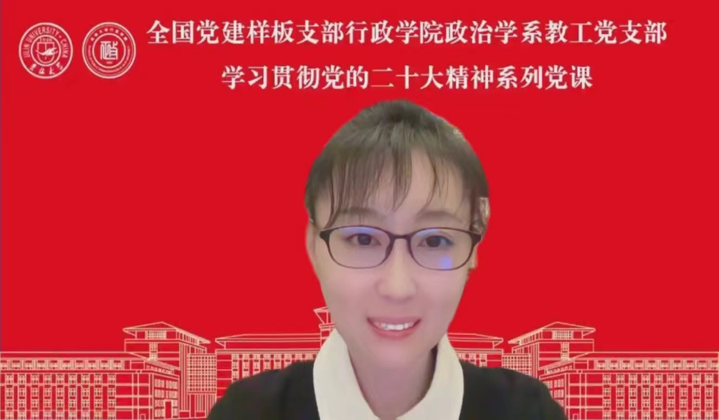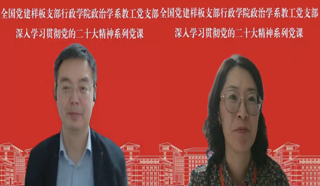 行政学院党委副书记史慕华教授阐述了“学习贯彻党的二十大精神系列党课”的目的和意义,指出系列党课旨在更好传达党的二十大精神,有力结合学院专业学习,提升学院研究生的政治站位,通过发挥全国党建工作样板党支部的引领作用,以支部共建和专题党课形式,使学院师生党员深刻领悟并有效贯彻党的二十大精神。