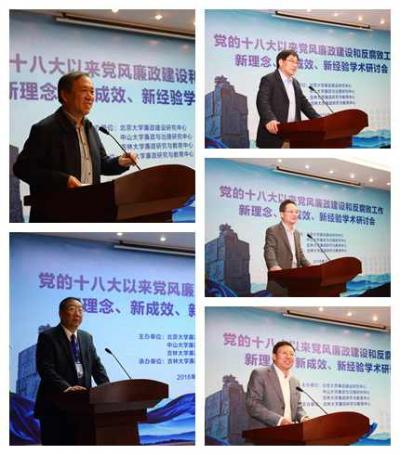 为深入总结党的十八大以来全面从严治党取得的新理念、新成效与新经验,充分发挥高校廉政研究机构在治国理政特别是全面从严治党中的智库作用,10月29日—30日,由北京大学廉政建设研究中心、中山大学廉政与治理研究中心、吉林大学廉政研究与教育中心联合主办的“党的十八大以来党风廉政建设和反腐败工作新理念、新成效、新经验”学术研讨会在吉林大学举办。吉林省委常委、纪委书记崔少鹏,吉林省纪委副书记、监察厅厅长邱大明,吉林大学党委书记杨振斌,吉林大学校长李元元,吉林省纪委常委、秘书长董天波,吉林省纪委调研室主任孙海蛟,吉林大学党委副书记、纪委书记李忠军,东北师范大学党委副书记、纪委书记兰恒斌及吉林大学相关职能部门负责人出席会议。来自北京大学、清华大学、中国社会科学院、中国人民大学、复旦大学、中山大学、西安交通大学、北京航空航天大学、吉林大学等30余所高校和科研机构的50多位专家学者及《吉林大学社会科学学报》、《中国纪检监察》等杂志社负责人参加会议。人民日报、新华社、光明日报、中国纪检监察报、中国社会科学报、法制日报、吉林日报、吉林电视台等新闻媒体记者对会议进行了跟踪报道。