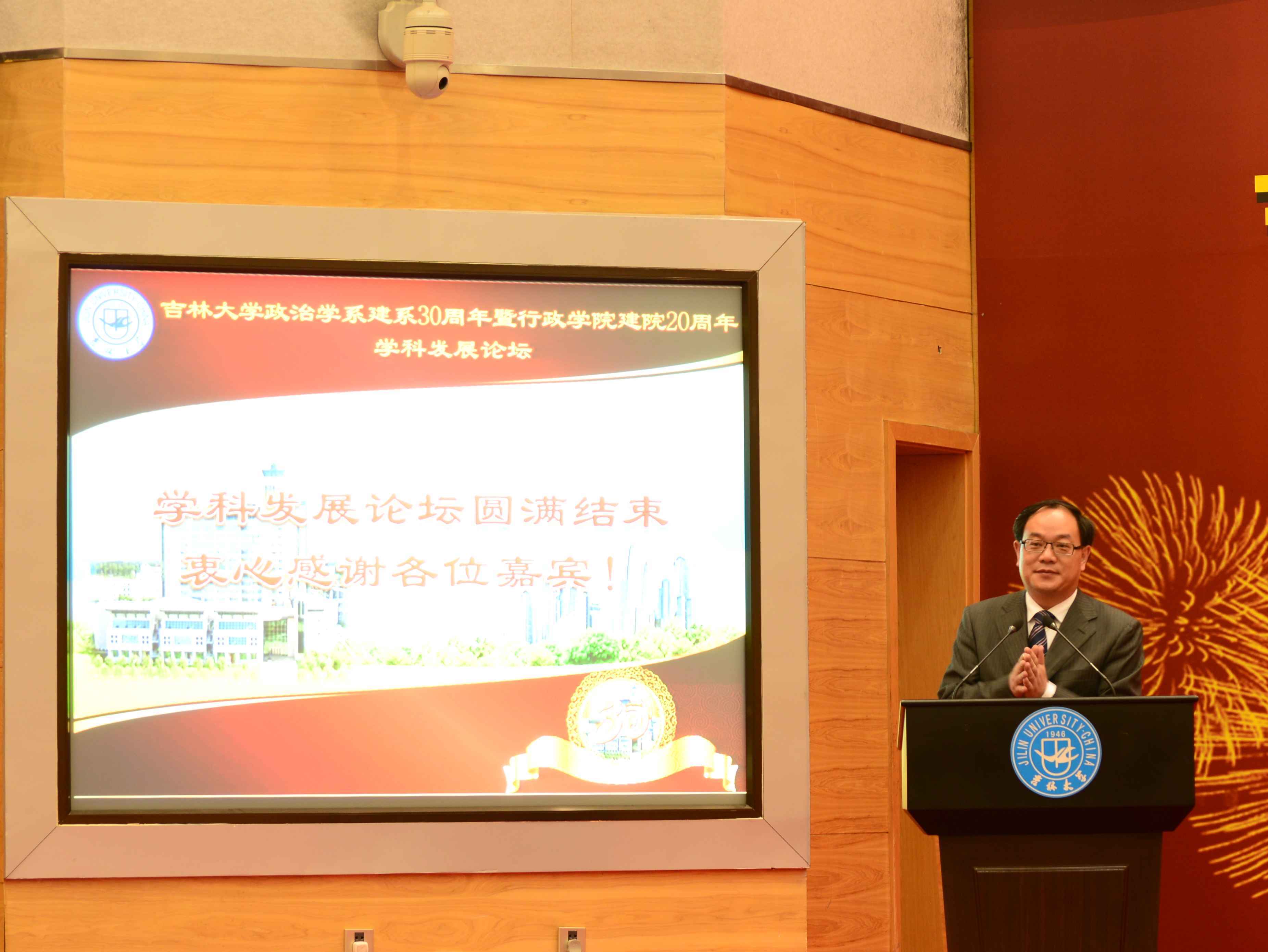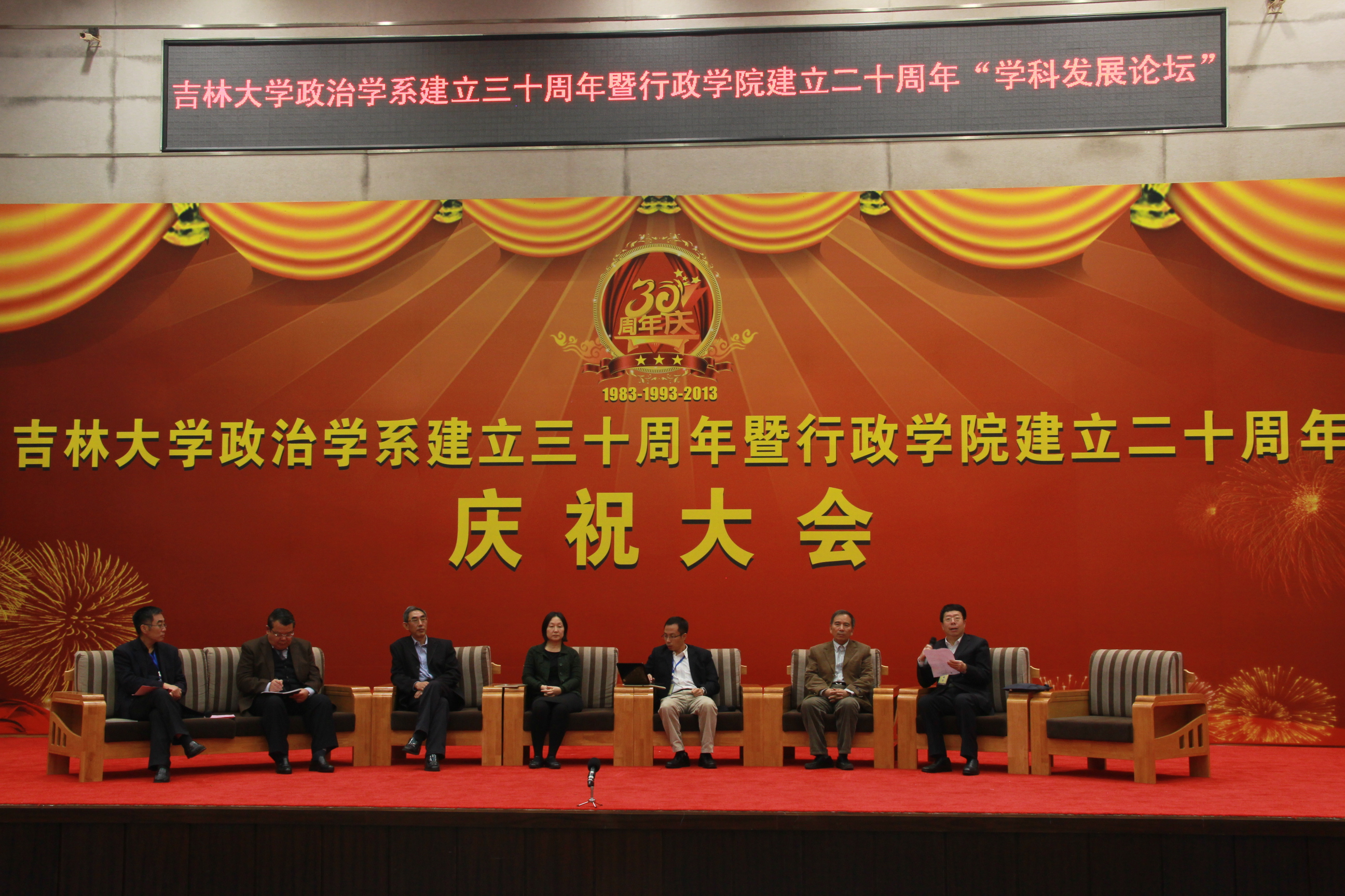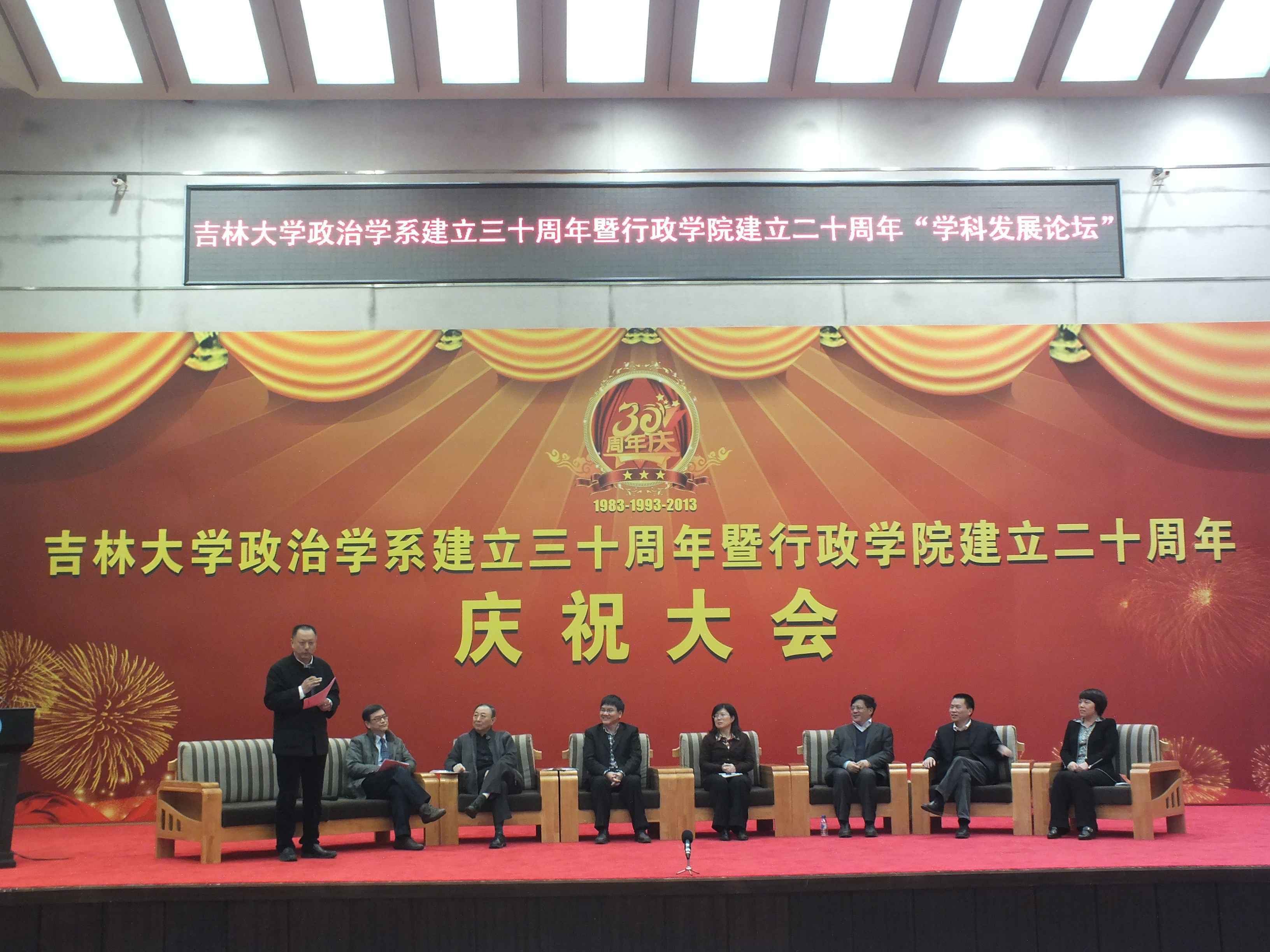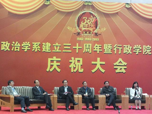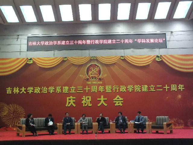 “学科发展论坛”作为吉林大学政治学系建立三十周年暨行政学院建立二十周年庆典的系列活动之一,于10月20日下午在吉林大学中心校区东荣会议中心报告厅隆重举行。本届学科发展论坛邀请到了来自北京大学、中国人民大学、复旦大学、中山大学、南京大学、南开大学、武汉大学、中山大学、兰州大学、华南理工大学、东北大学、外交学院等40余所高等院校的知名专家学者就“学科发展”这一主题展开了广泛而深入的交流与研讨。论坛围绕“学科发展”的主题设置了“政治学与中国政治发展”、“公共管理学学科建设与发展”、“公共治理与公共政策”和“政治思想与社会发展”四个专题。来自全国各地的专家学者通过进行分组讨论、师生交流等形式畅所欲言、各抒己见,就政府职能转变、党政关系调整、社会危机治理等一系列理论与现实问题进行了研讨。行政学院部分教师、在校博士、硕士研究生和全体本科生聆听了这次论坛。