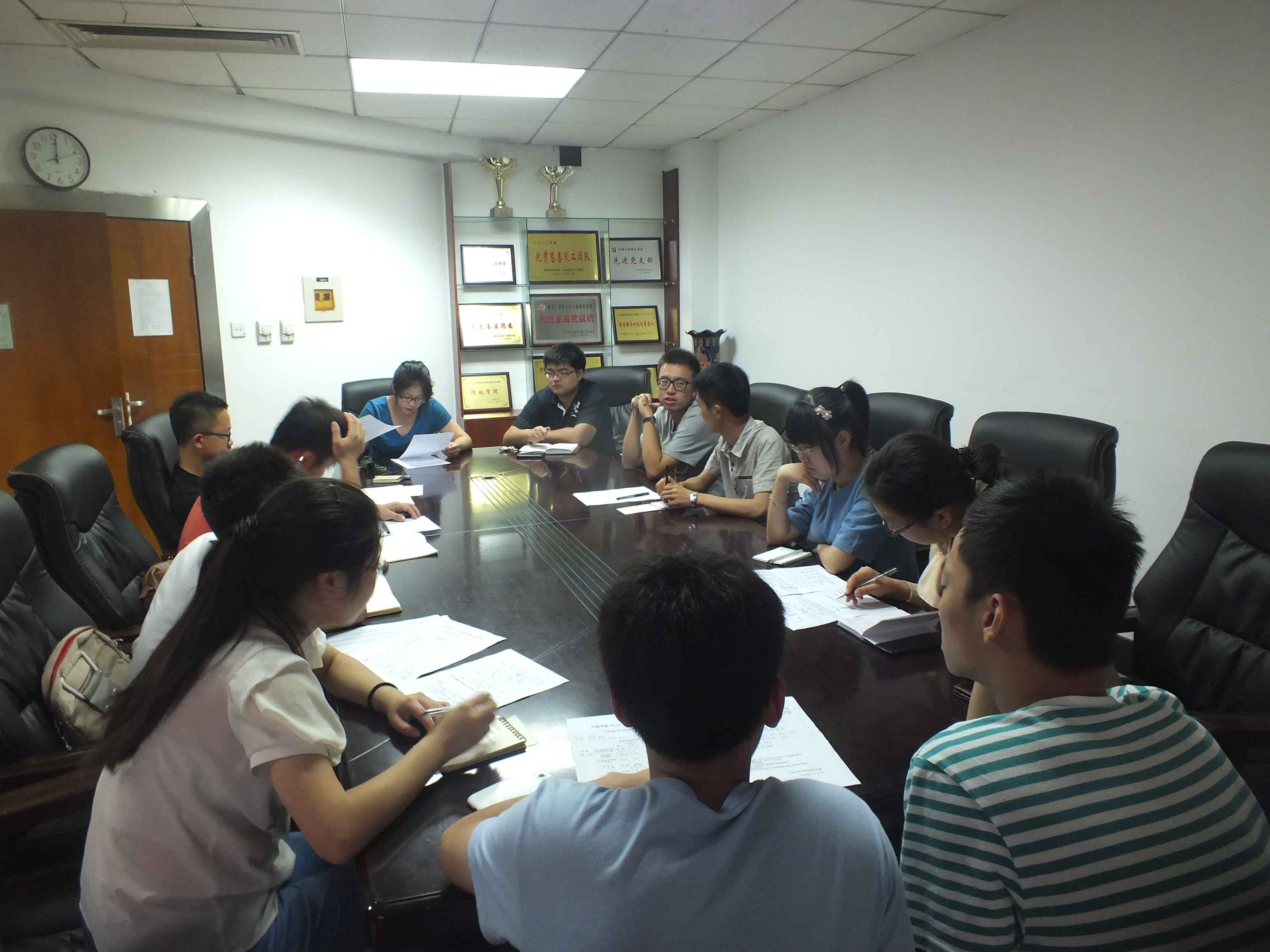 为确保2014级本科生迎新工作的顺利开展,更好地服务新生,行政学院于8月25日17时在东荣大厦1203会议室召开行政学院主要学生干部迎新工作会议。辅导员刘洋、曲畅竹主持会议,行政学院学生组织主要负责人和2014级新生代理班主任参加了会议。