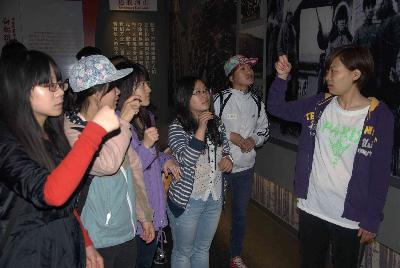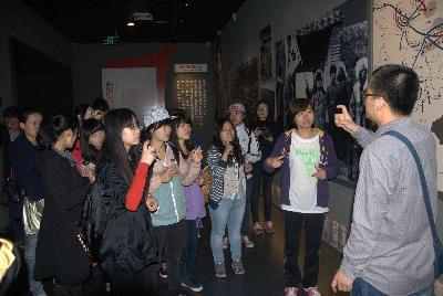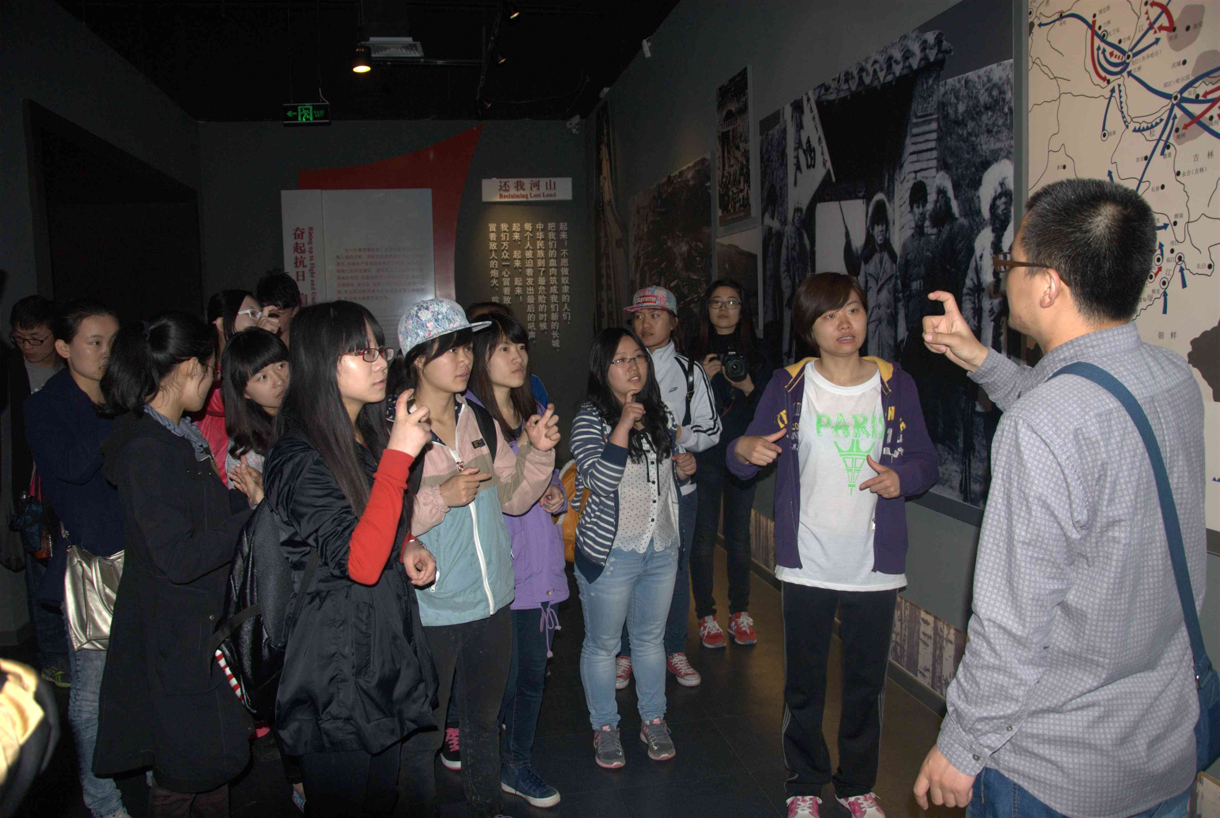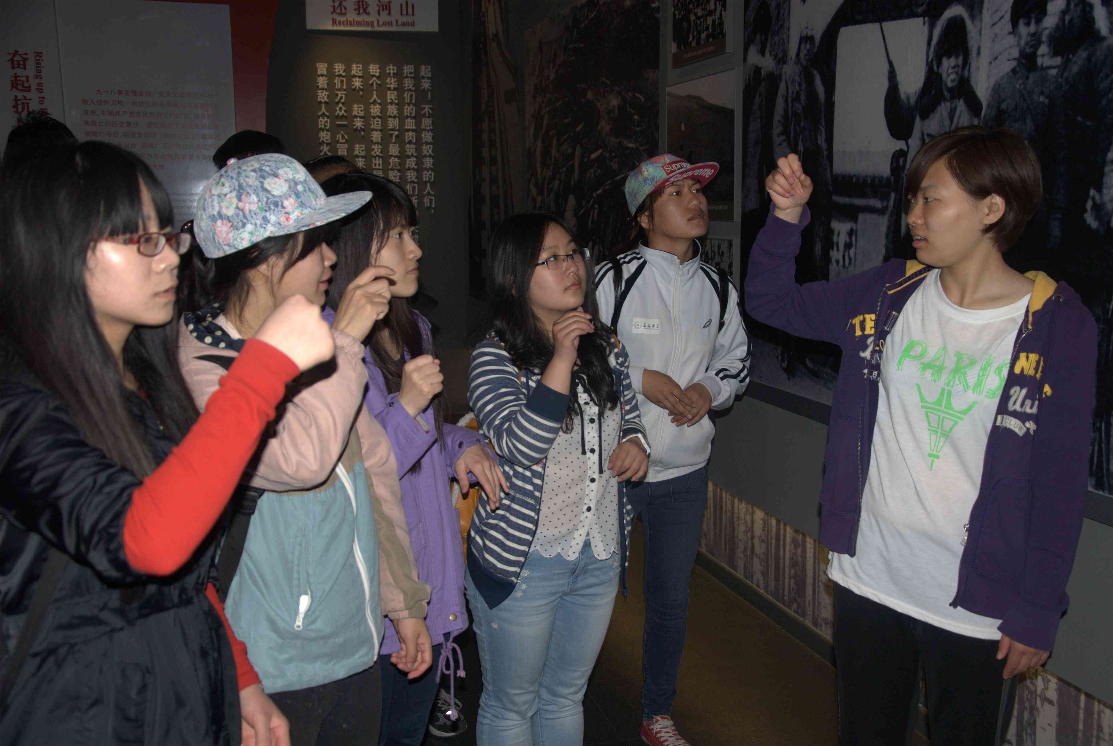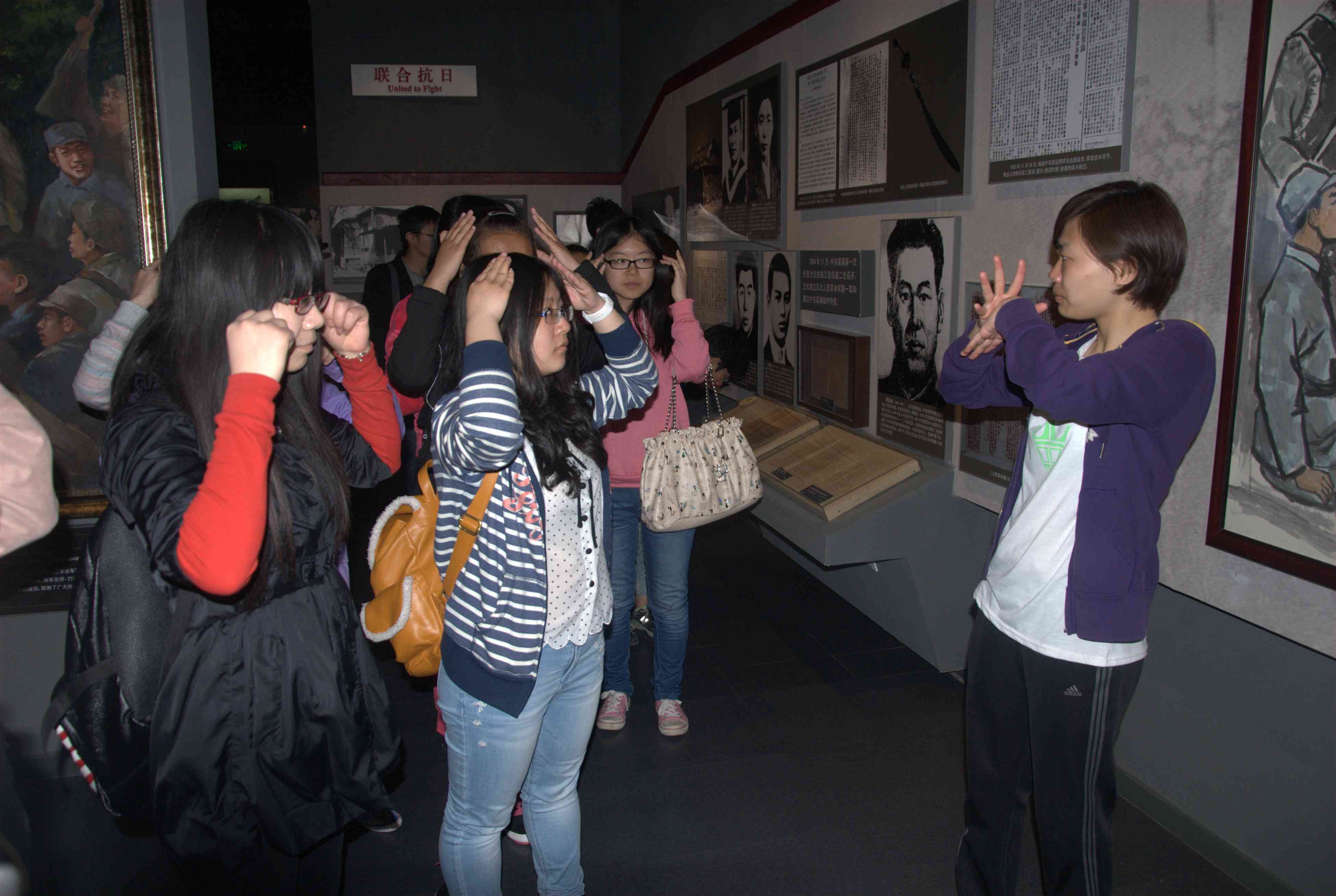吉林大学行政学院于2014年3月中旬便开展新学期吉林省博物馆志愿者注册工作以来,已向吉林省博物馆派送了五批次的志愿者进行志愿服务。5月18日是国际博物馆日,二十多名行政学院“政能量”志愿者再赴吉林省博物馆进行志愿服务并参加手语培训;认真的表情、热切的态度以及不曾停下的手部动作练习充分体现了志愿工作者们对志愿服务的坚定热情和信心。参观与培训同时进行,志愿者们在工作人员和手语教学人员的引导下参观了“黑土军魂——东北抗日联军军史展览”,展览讲述了从1931年东北沦陷到1945年抗日战争胜利的曲折历程。从“主动出击”到“游击战术”,再到“挥师西征”,一幕幕战争场景再现、一幅幅革命先烈的图像仿佛把人们带回了那个战火纷争、艰苦卓绝的年代,带领各位志愿者经历了一次形象深刻的爱国主义教育。