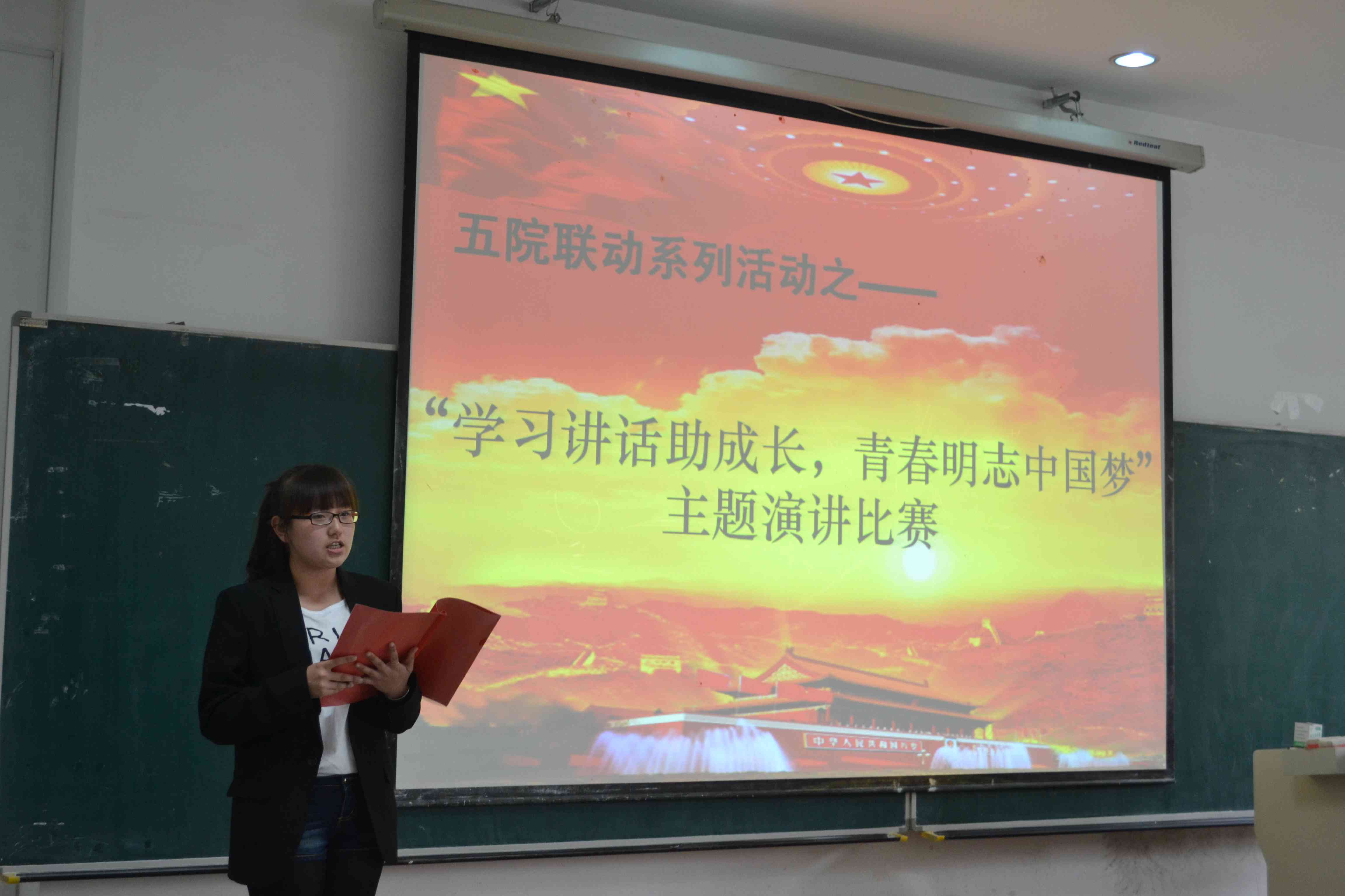为引导广大青年学生深入学习贯彻习近平总书记系列重要讲话精神,不断坚定在中国特色社会主义道路上实现中国梦的理想信念。2014年5月25日14时,由行政学院主办,经济学院、金融学院、法学院、商学院协办的“学习讲话助成长,青春明志中国梦”演讲比赛在中心校区第三教学楼第三阶梯教室成功举办。行政学院本科生辅导员、院团委负责人刘洋,助理辅导员吴兴识和各学院主要学生干部出席本次活动并担任评委。