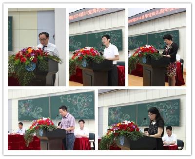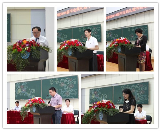 董华荣代表2014届本科毕业生发言,他回顾了大学四载年华的成长和收获,用誓言和奋斗书写无悔青春的历程与体验,以及在行政学院收获的心怀天下、浩然正气等宝贵的人生财富,并向一路共同走来的同学、对学生悉心教导的老师、给予学生无限接纳与包容的学院和母校致以诚挚的感谢与美好的祝愿。张平代表2014届毕业研究生发言,她首先回顾了研究生学习与本科生的不同,讲述了研究生时代的学习对未来对工作的莫大帮助。她还讲述了学生时代的回忆,表达了对母校一草一木的留恋,并借此机会向行政学院每一位老师致以最诚挚的谢意,表达了对老师、对同学、对学院的祈愿和祝福。