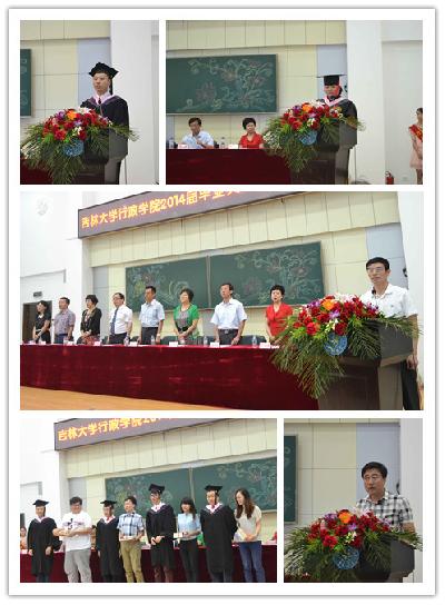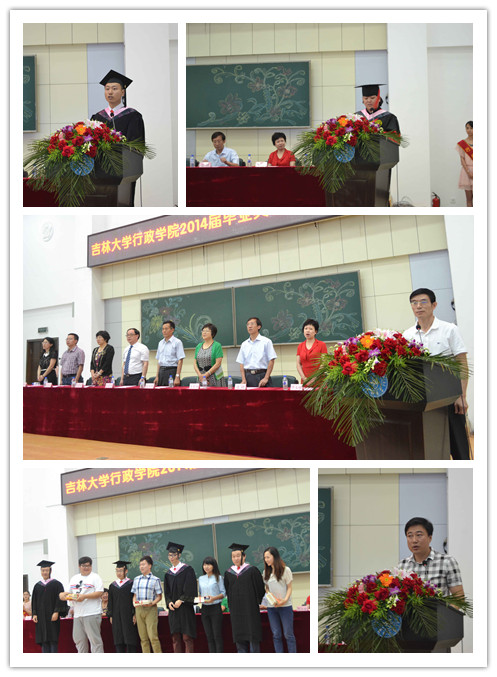 2014年6月25日上午九时,吉林大学行政学院2014届学生毕业典礼暨学位授予仪式在中心校区数学楼报告厅隆重举行。国家教学名师周光辉,学院学位评定委员会主席王彩波,院长张贤明,党委书记边铁,党委副书记常有余,副院长刘雪莲,副院长许玉镇,副院长殷冬水,党委副书记兼副院长史慕华等学院领导及教师代表和家长代表出席典礼,二百余名本科毕业生、硕士毕业生和博士毕业生参加了典礼。毕业典礼暨学位授予仪式由行政学院党委副书记常有余主持。