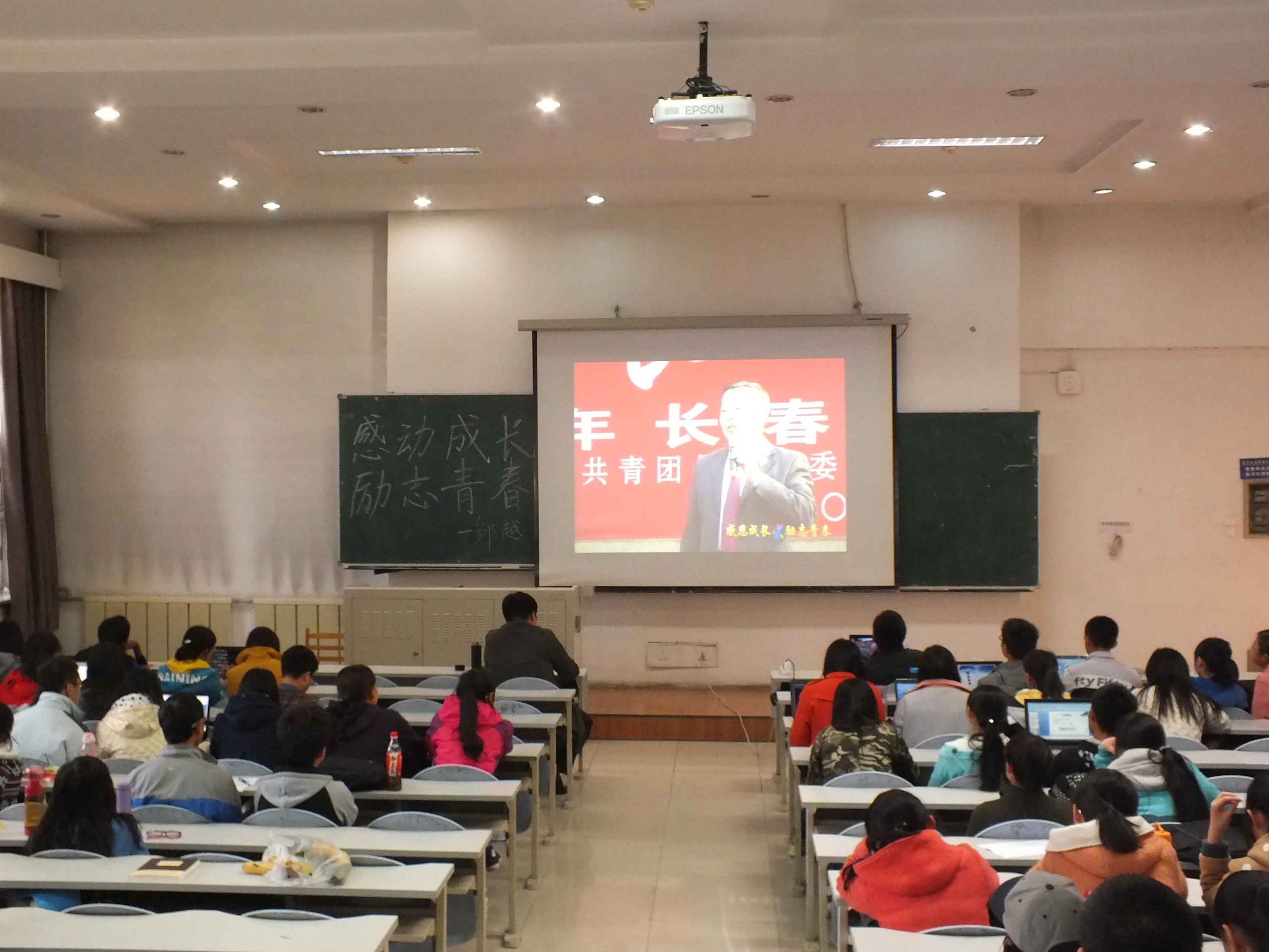 为引导行政学子树立正确的人生观、价值观, 度过一个有意义的青年节,行政学院团委积极响应共青团吉林大学委员会关于“组织全校青年学生在五四青年节期间收看邹越《感恩成长 励志青春》主题演讲”的号召,于5月5日18时许在中心校区第三教学楼十三阶组织行政学院本科生观看了著名演讲家邹越主讲的“感恩成长,励志青春”演讲视频。行政学院团委负责人、本科生辅导员刘洋主持了本次活动。