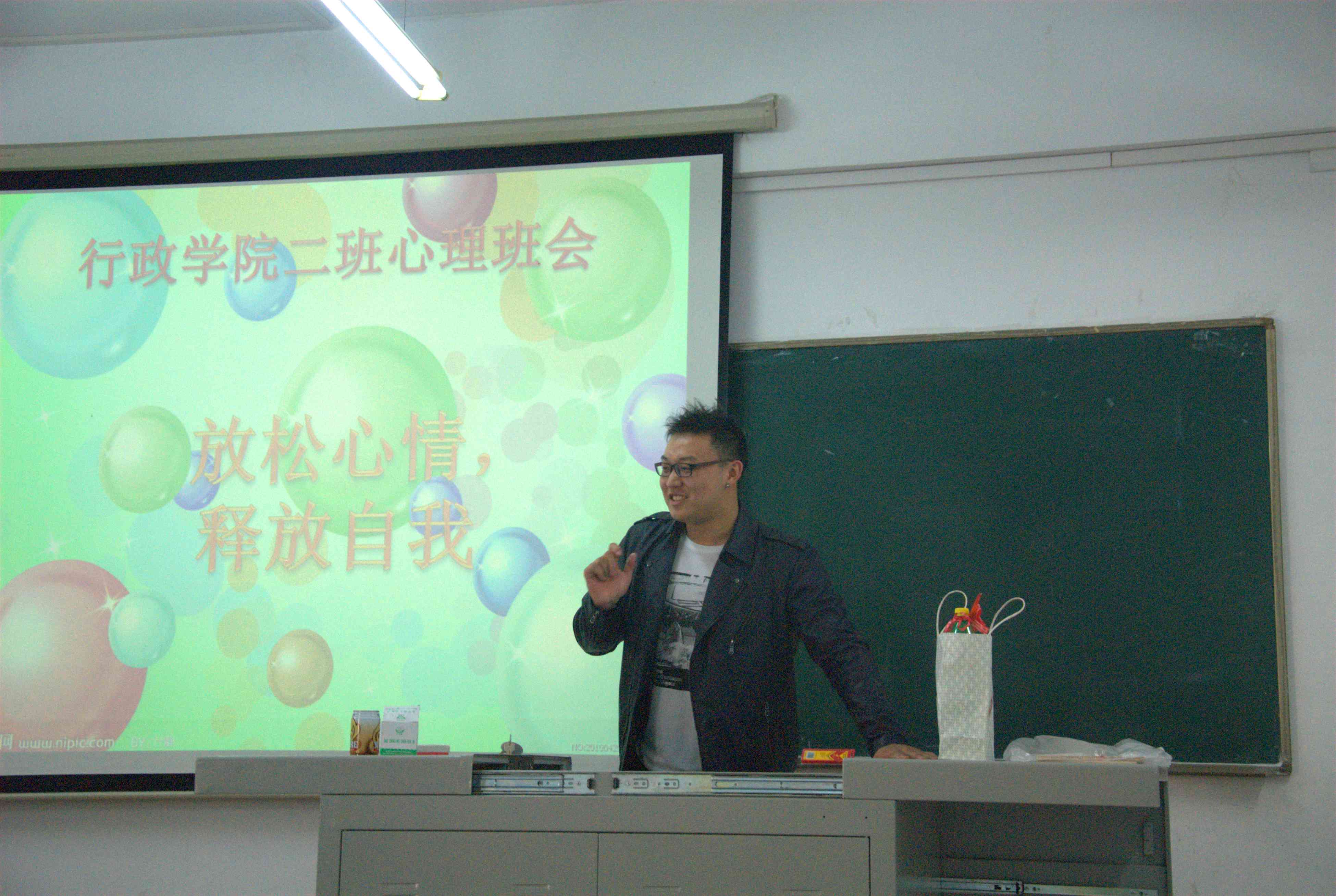 4月11日15时许,在吉林大学学生心理健康中心的指导之下,行政学院081302班在第三教学楼307教室举办了“放松心情,释放自我”心灵沟通主题班会。此次班会由心理委员王厚博主持,081302班全体成员共同参加。