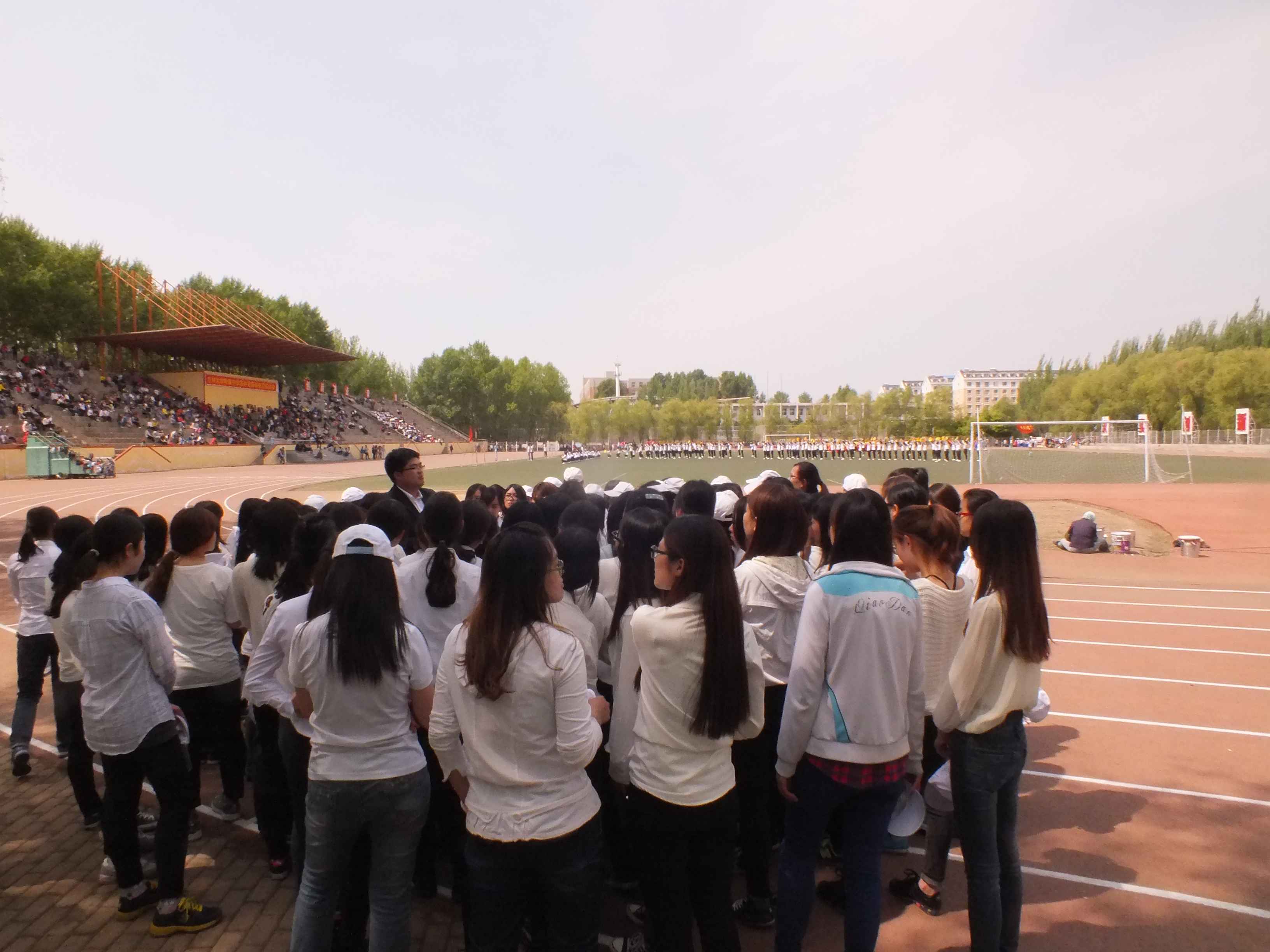 在比赛开始前,行政学院的参赛队伍在学院本科生辅导员刘洋老师的带领下早早的来到了候赛区进行比赛准备和热身。刘洋老师在赛前动员中希望同学们在比赛中保持平和的心态,拿出最好的状态,将辛苦训练一个月的丰硕成果在全校师生面前最完美的呈现出来。